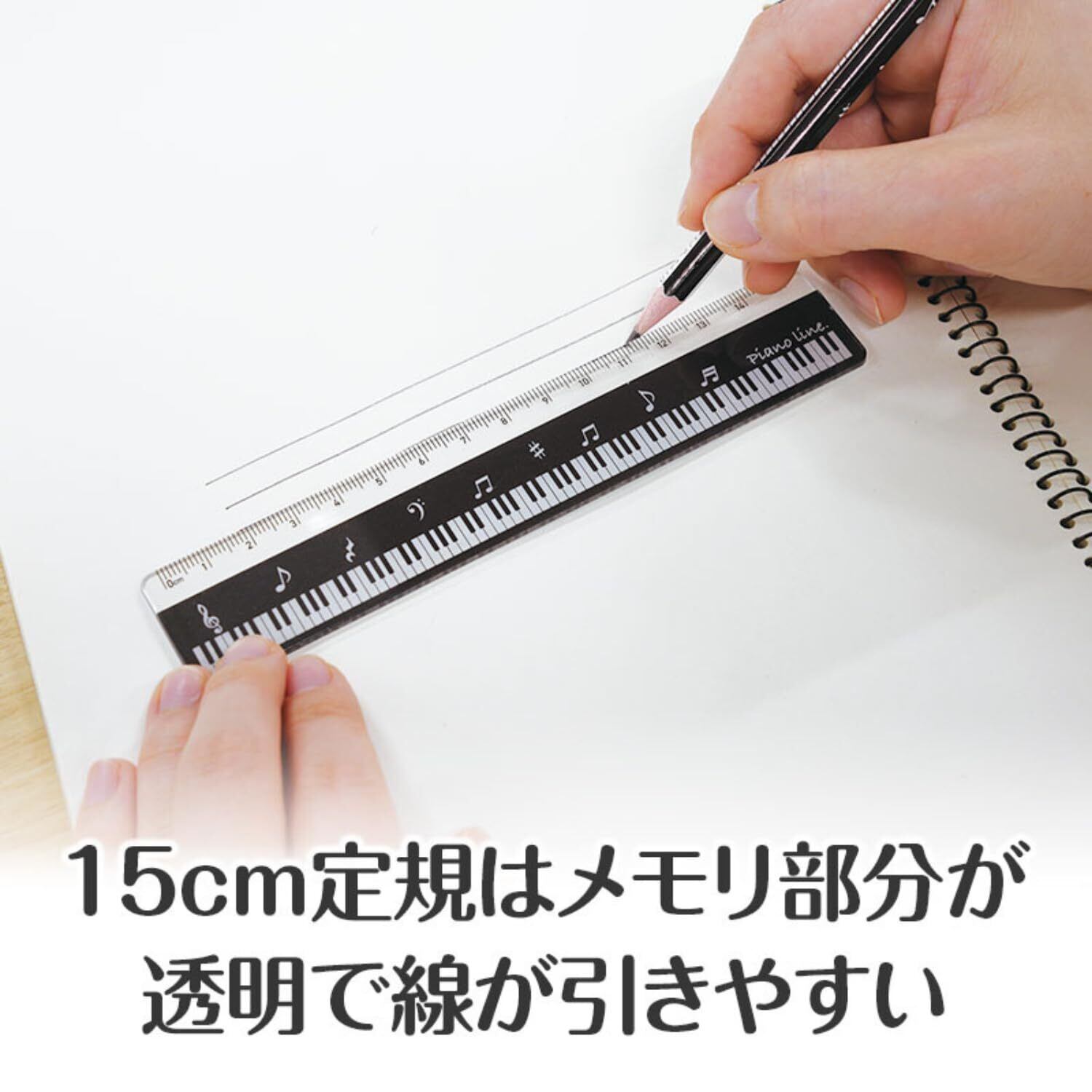 音符 柄 鉛筆 消しゴム 定規 3点セット 2セット入り ピアノ柄