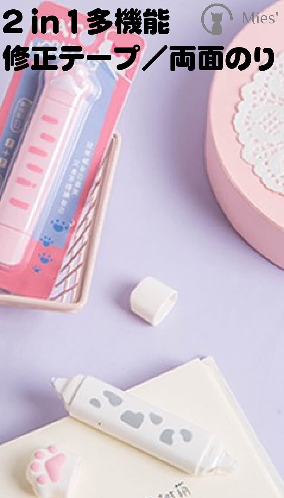 【特価セール】と 両面のリ 2個セット 修正テープ 両面テープ 2in1 修正 文房具 デザイン ねこ 手 ネコ の の 足 猫 文具 アクセサリー かわいい 可愛い文房具