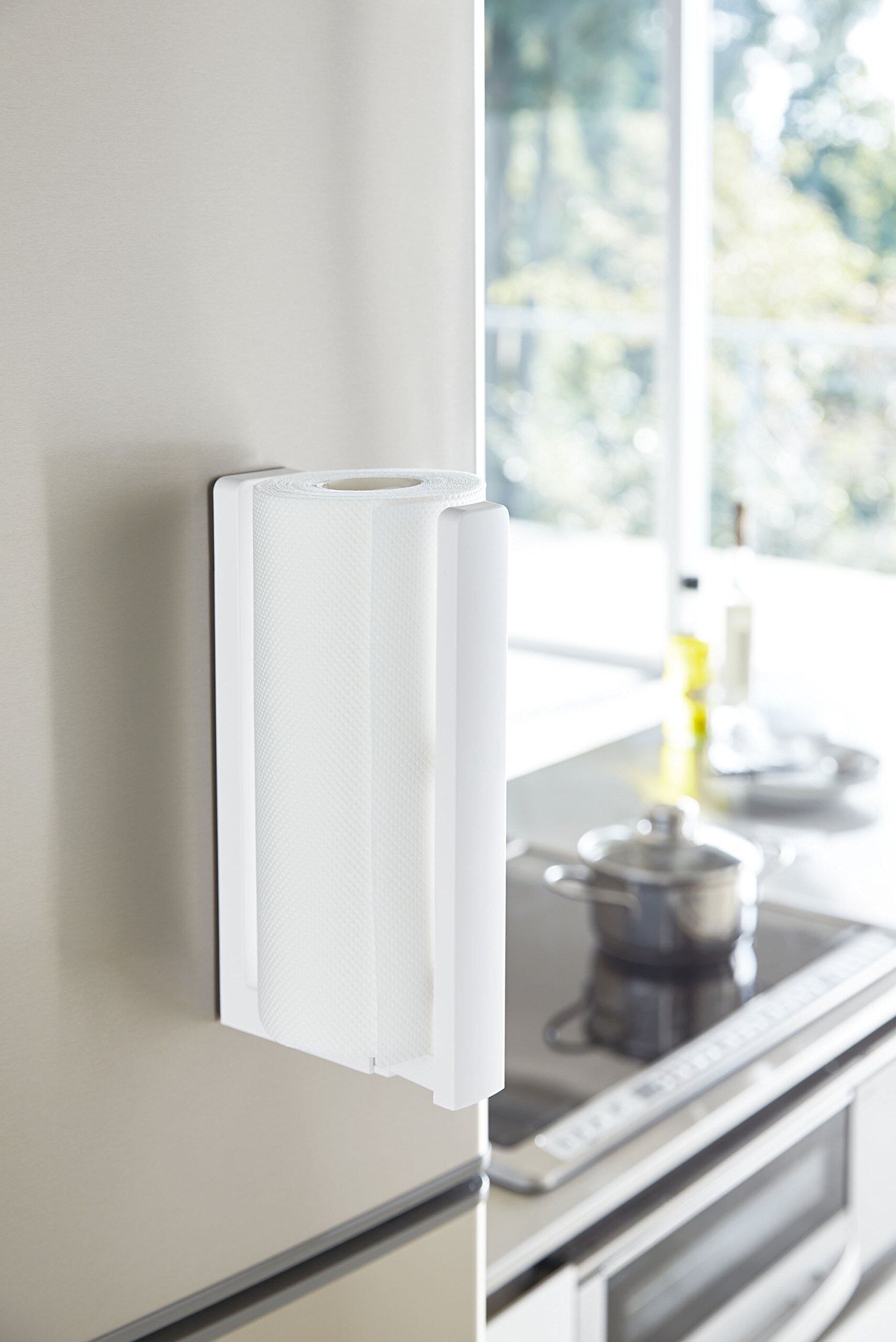 色:ホワイト_スタイル:単品_パターン名:ストッパー付きマグネットキッチンペーパーホルダー
