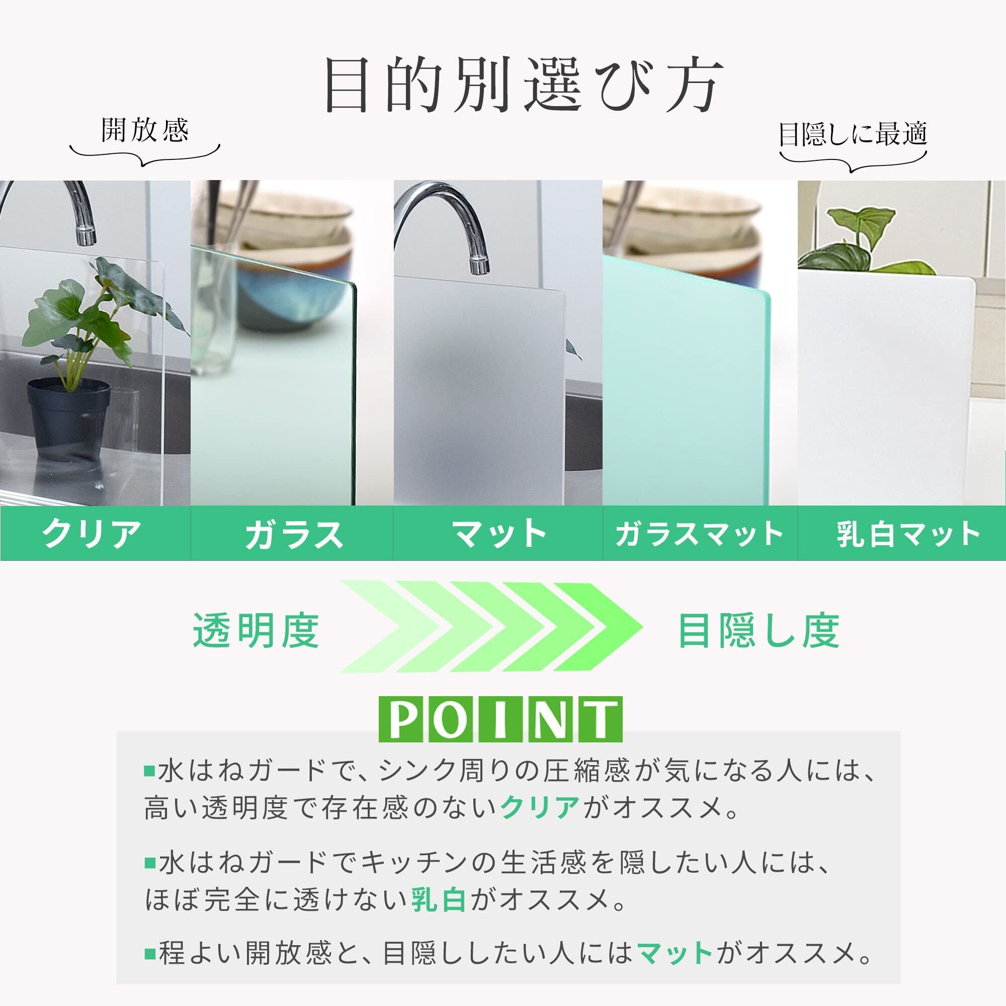 Kuai アクリル キッチン 水はね防止 パネル (50cm幅, マット)