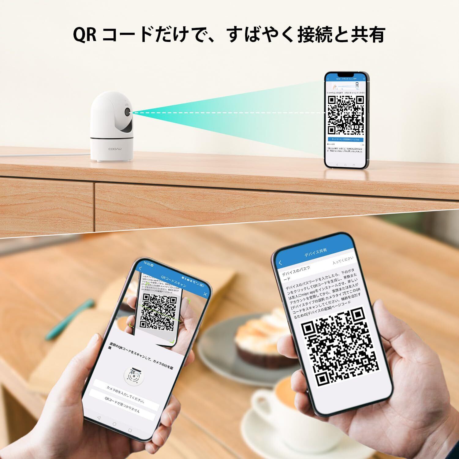 【300万画素・QRコードWIFI接続】COOAU 見守りカメラ ペットカメラ 人体検知 暗視機能 360°PTZ機能 H.265 双方向通話 WiFi強化 防犯カメラ Alexa対応 監視カメラペット用 接続簡単 24h常時録画 自動追尾 動体検知 警報通知 家族共有 複数カメラ同時接続 SDカード対応 ペット/ベビーモニター ネットワークカメラ 室内暗視カメラ 留守番 子供/犬/猫/老人