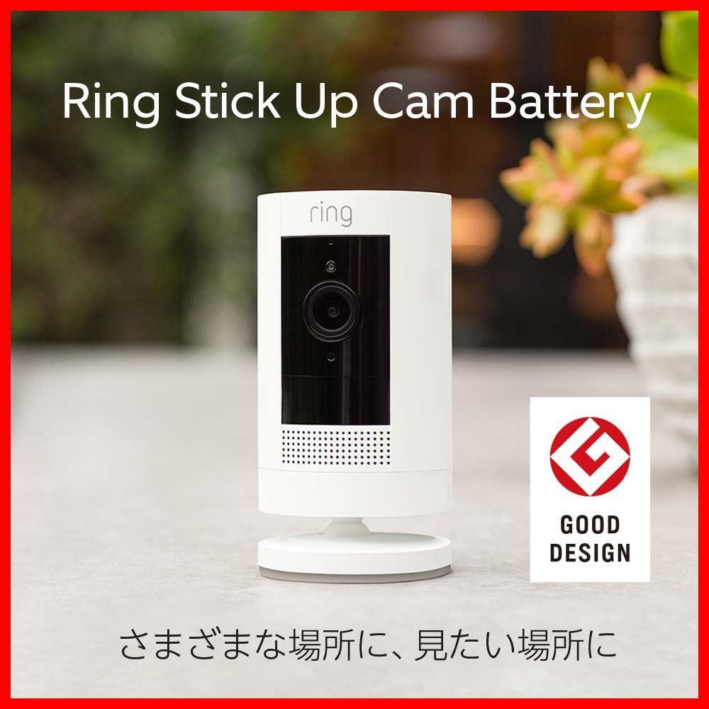 色:ホワイト_オプション:1個| バッテリーモデル) 外出先からも見守り可能、屋内・屋外で使える充電式セキュリティカメラ、デバイス盗難補償付き スティックアップカム (リング - Battery Cam Up ホワイト Stick 【2023年度グッドデザイン賞受賞】Ring