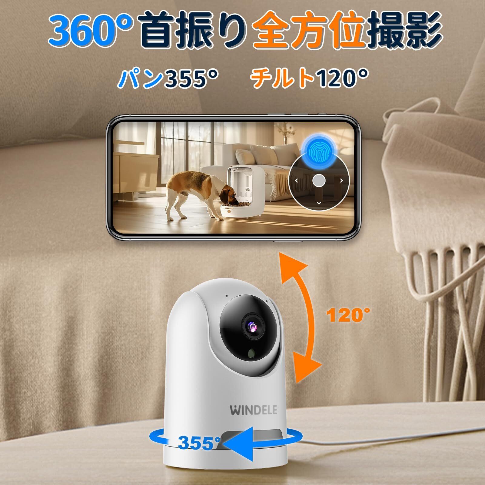 WINDELE ペットカメラ 400万画素 見守りカメラ 【2024新機種】 2.5K 防犯 室内 ネットワーク カメラ 360°首振り 遠隔操作 双方向通話 夜間撮影 自動追尾 検知警告通知 パンチルト ドーム型 犬 猫 赤ちゃん 高齢者見守り 老人看護