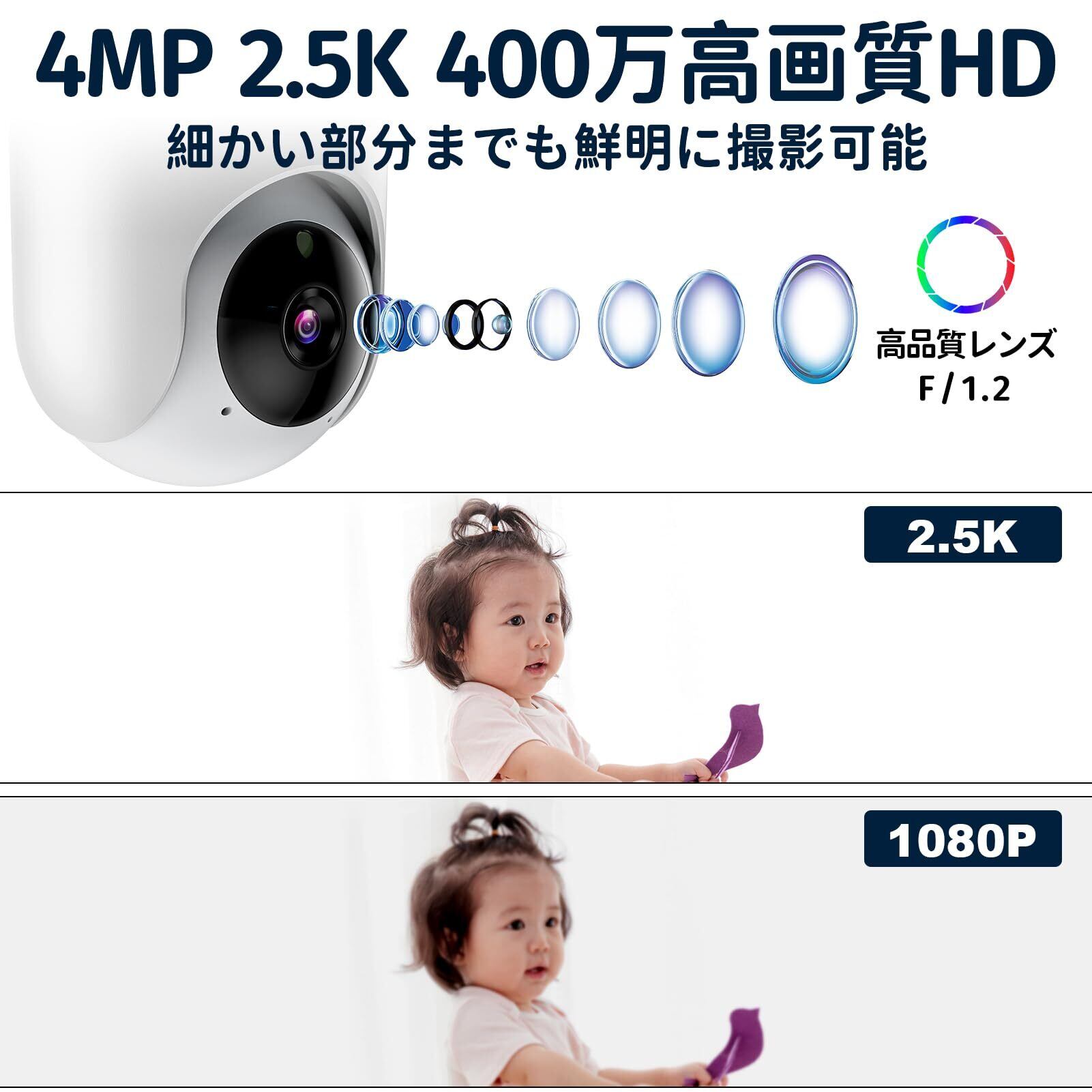 【400万画素、360°広範囲録画、夜間暗視撮影】WINDELE 2024年最新版ペットカメラはより広くて精細に見る400万(2560*1920P 2.5K)、1080Pより高画質のレンズを搭載し、お愛犬、愛猫などのペットとか,赤ちゃんの表情とか細部の細かい部分までも鮮明に映ります。ベビーでも年寄でもペットでも見守りにしっかりサポートできます。そして360°PTZ首振り機能(パン355°、チルト120°)が搭載、広角全方位撮影でより多くの角度の監視を実現できます。850nm IR赤外線が搭載して、暗視も機能できて、夜間撮影も可能で昼夜を問わず最大10mの優れたナイトビジョンを実現し、自動暗視で暗い場所でも赤ちゃんやペットを鮮明で高画質な映像を提供します。