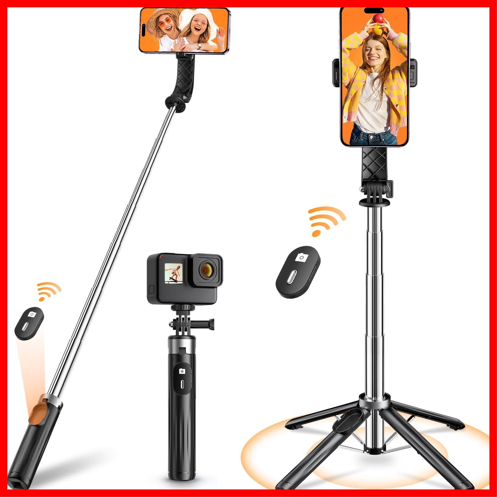 【様々な形で撮影を楽しめる】一体化になるデザインで、自撮り棒としてだけでなく、スマホスタンドとして動画鑑賞、集合写真、生放送、オンライン会議などにも適用です。スマホを接続できるのはもちろん、デジカメに対応出来るネジ・アダプター付き、撮影が好きな方にとって便利なアイテムです。360度回転するホルダー部分に加えて、ヘッド部分は225度まで折りたたむ形で角度の調整ができます。縦、横向きなど、さまざまなアングルでの撮影を楽しめます。