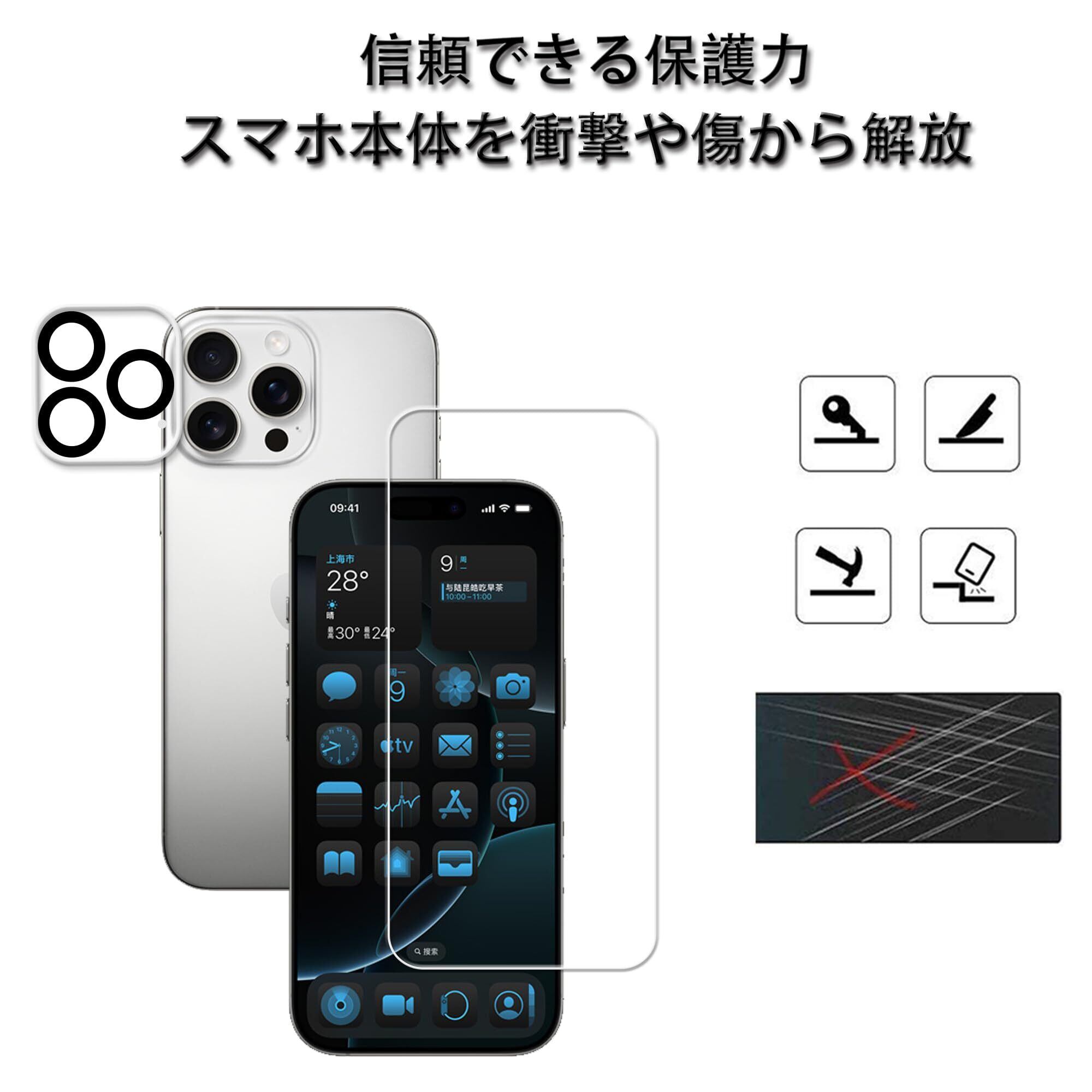 サイズ:iPhone16 Pro- 16 Pro Max JTM2+2 枚セット ガイド枠付き HKKAIS 日本製硝子採用 iPhone16 Pro Max 用 ガラスフィルム グーグル カメラフィルム 強化 ガラス 液晶画面 アイフォン16プロマックス 保護フィルム