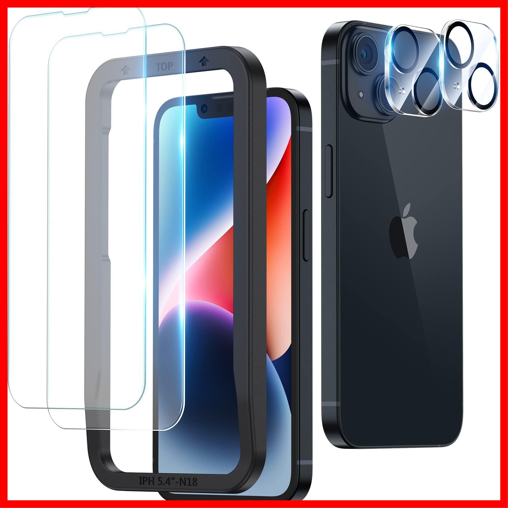 NIMASO ガラスフィルム (2枚)+カメラフィルム (2枚) iPhone14 専用 保護フイルム 強化 ガラス ガイド枠付き カメラ レンズ 保護カバー 硬度9H 耐衝撃 アイフォン14 用 保護フィルム iphone 14 用 レンズフィルム 6.1インチ対応 NFP23C657