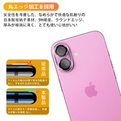 【9H強度&飛散防止】対応 iPhone 16 / iPhone 16 Plus レンズ 強化ガラス 保護フィルムは日本旭硝子素材を採用します。 落下、スクラッチ、衝突、衝撃に高い耐久性があります 衝撃を最小限に抑えてカメラの破損を抑え。カッターなどの鋭利なものを当たってもキズが付きにくくて高い強度を持ち表面硬度9Hが特徴です。特殊な飛散防止設計により、万一割れてしまった際にも飛散することなく、高い安全性を実現します。