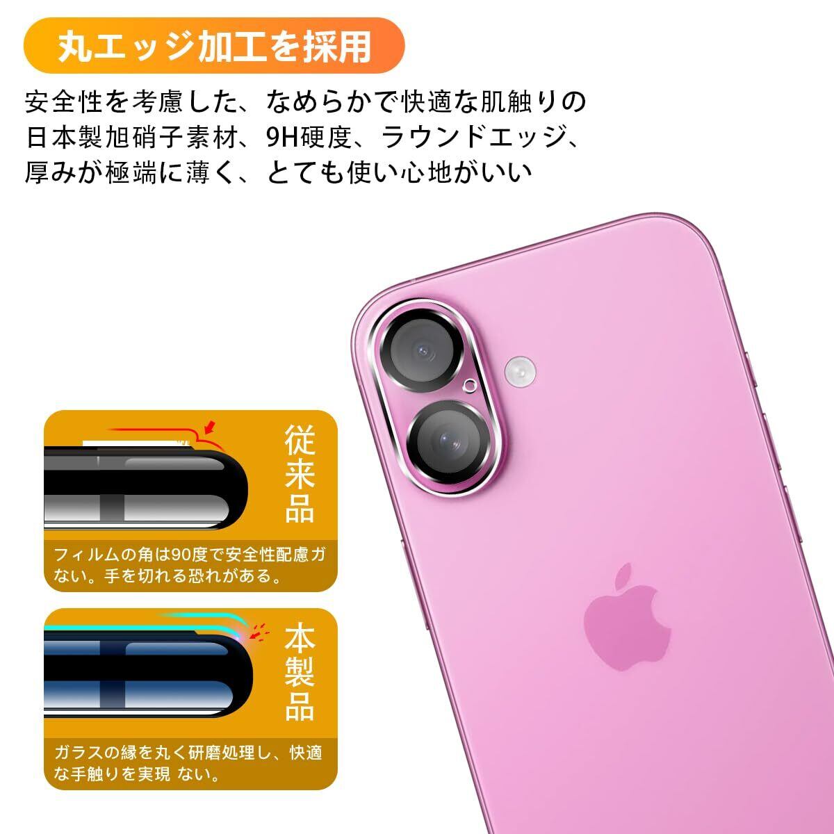 対応 アイフォン16 / アイフォン16Plus カメラ 強化ガラス 保護フィルムは日本旭硝子素材を採用します。