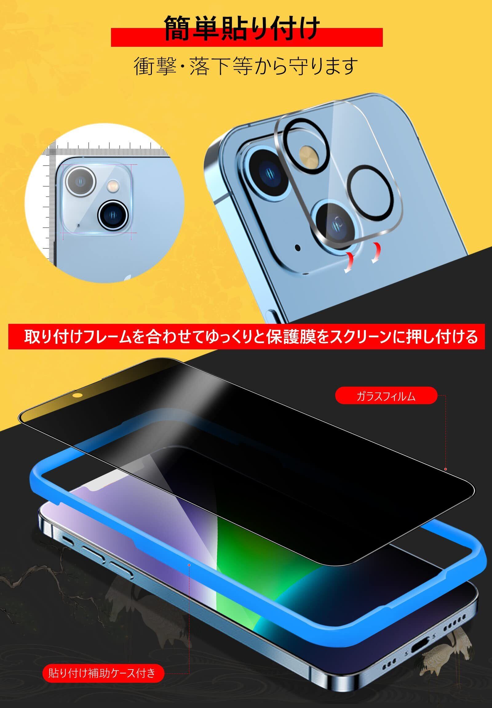 【覗き見防止】 iphone14 ガラスフィルム[2枚]カメラフィルム[2枚]のぞき見防止 アイフォン14強化ガラス 液晶保護フィルム 横から見えない 【6.1インチ/ガイド枠付き】