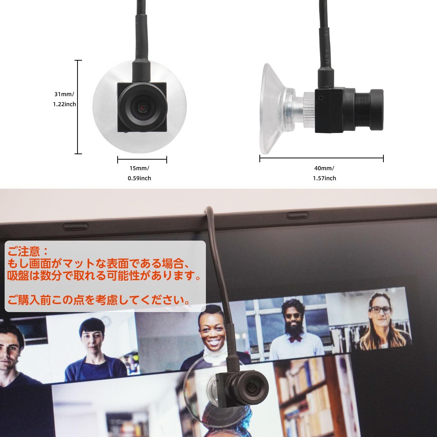 サイズが1.5センチの小型ウェブカメラであり、吸盤を使って簡単にディスプレイの前に吊り下げることができます。このカメラを使うことで、オンライン上で相手と自然に目線を合わせることができ、コミュニケーションの円滑化や好感度の向上が可能です。
