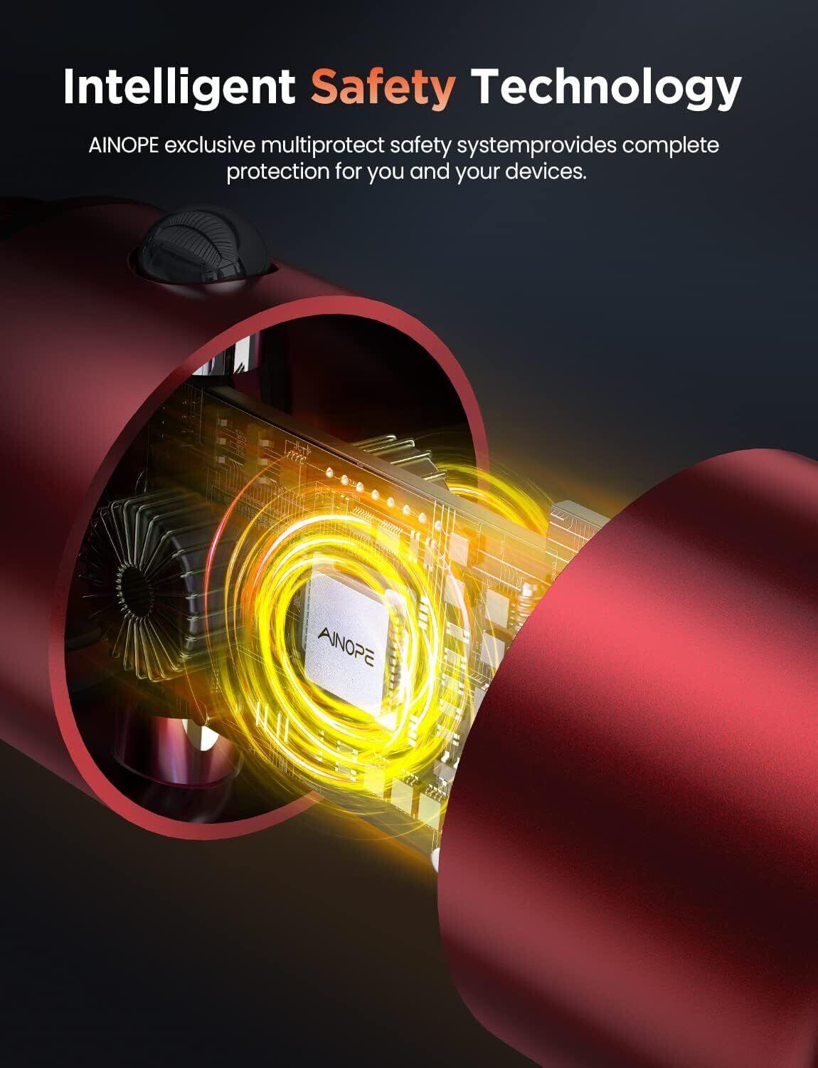 【2024超ミニデザイン】AINOPE シガーソケット usb【全金属/軽量】カーチャージャー 車 充電器 USB 2ポート 4.8A 24W 12V/24Vに対応 iPhone 14/13/SE/12/11/X/8 Xperia Samsung などスマホに対応 ブラック-Red
