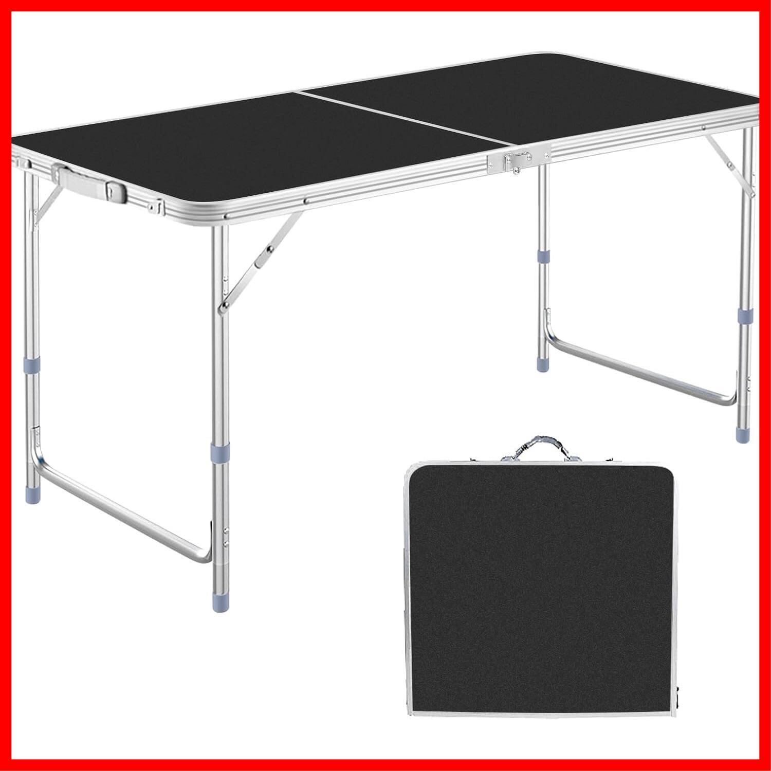 【日本企業】アウトドア テーブル キャンプ テーブル 折りたたみ 高さ3段階調整可能 120×60×(55-62-70)cm ピクニック レジャー キャンプ用 LK (black)