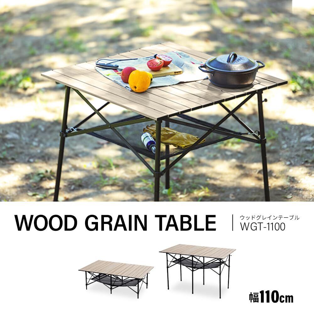 アイリスオーヤマ アウトドアテーブル ロールテーブル ウッドグレイン 幅70/110 折りたたみ式 テーブル 軽量 コンパクト収納 アウトドア キャンプ 高さ調節可 多機能 ギフト プレゼント