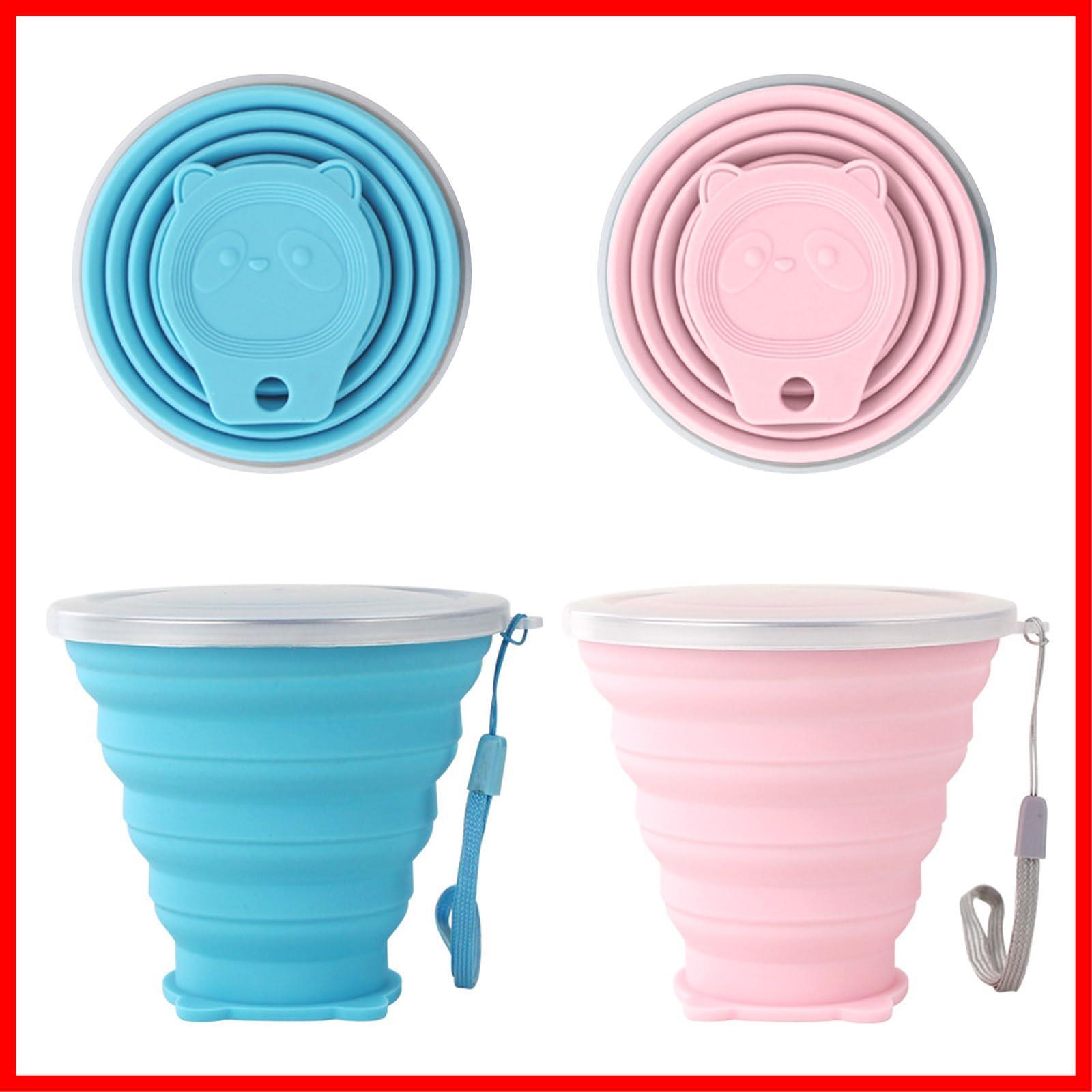 happkau 折り畳みコップ 2個入り 折りたたみコップ 蓋付き 270ml 多機能 耐熱 携帯に便利 かわいい おしゃれ 食器 軽量 旅行 キャンプ用 通勤 アウトドア (青+ピンク)