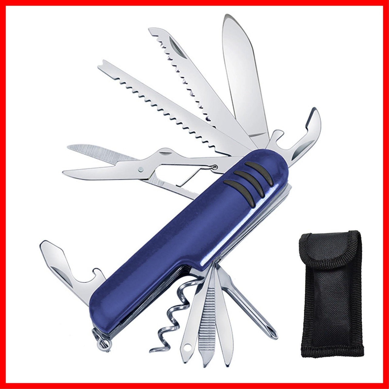 HanaHaul 11-in-1 マルチツール アウトドア用 多機能ツール ステンレス製 ノコギリ 缶切り 栓抜き はさみ ライバー 携帯用ミニ型 耐久性が良い 折畳式 ポケットサイズ アウトドア 切断加工 DIY 登山 キャンプ 釣り 防災用品 収納ポーチ付 (ブルー) [並行輸入品]