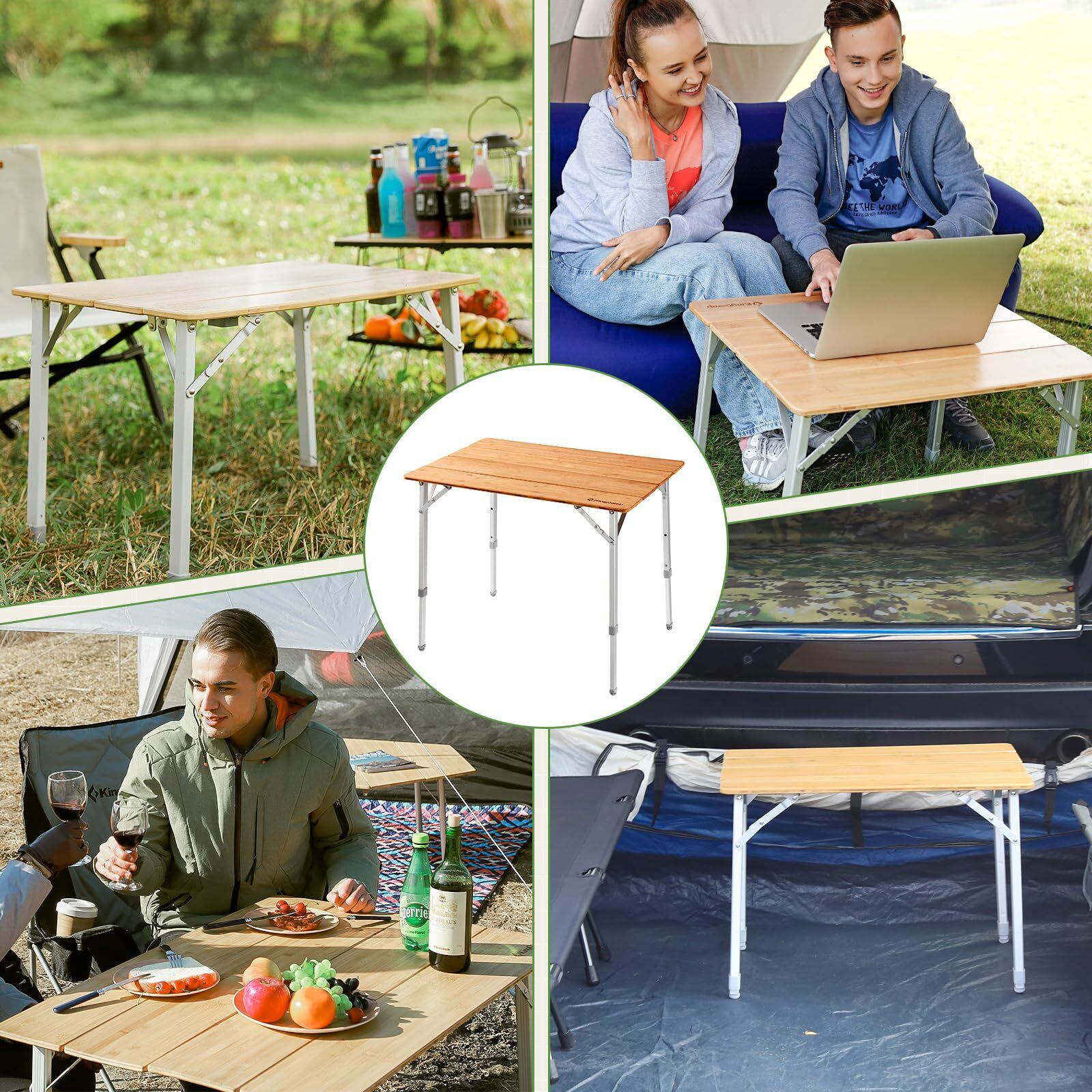 KingCamp アウトドア テーブル 折りたたみ キャンプ テーブル 高さ調節 バンブー ロールテーブル 天然 孟宗竹 コンパクト 高耐荷重 ピクニック ファミリー 収納付き