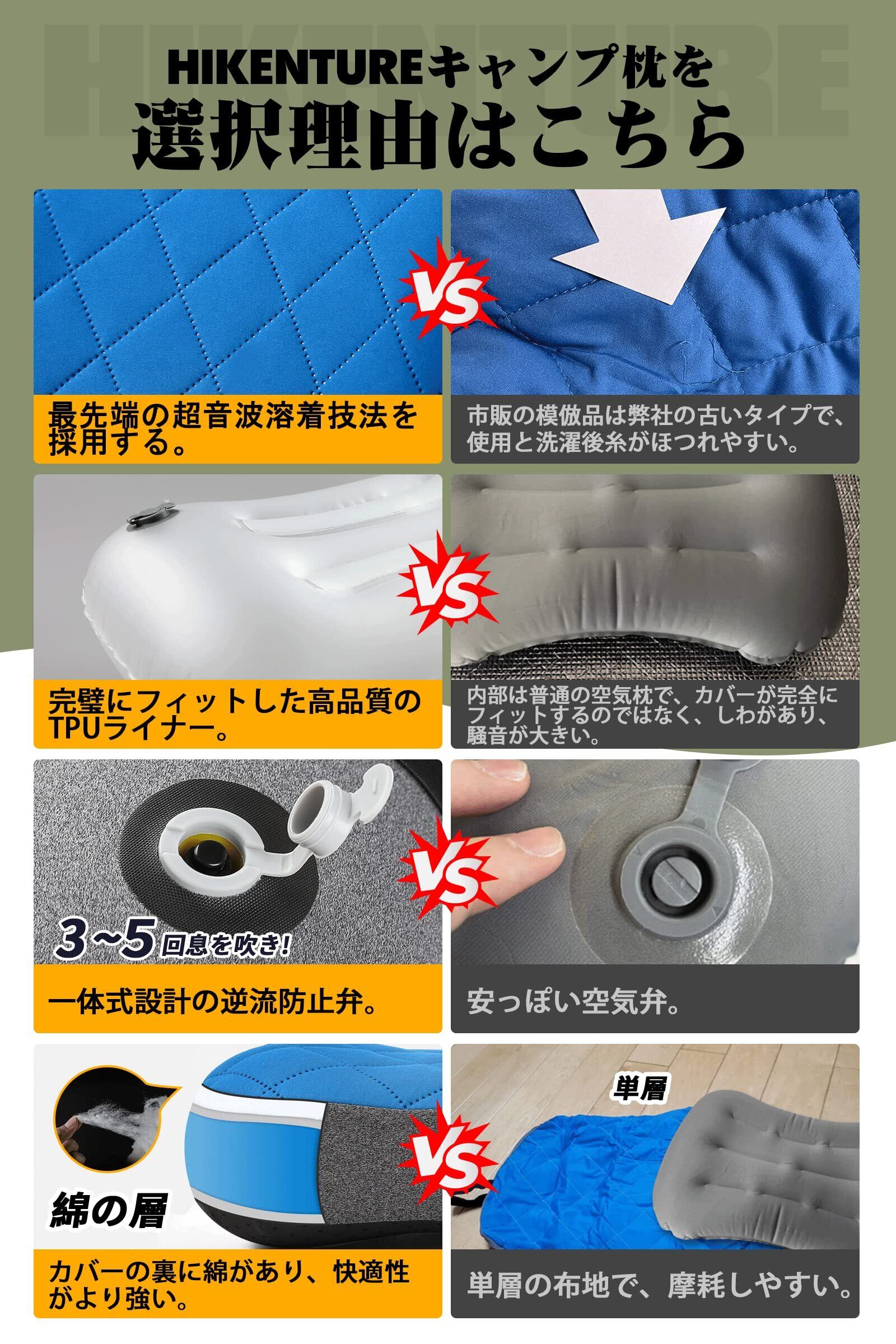 HIKENTURE キャンプ 枕 アウトドア 枕 【滑り止め付き】 携帯枕 超軽量 エアー枕 トラベルピロー エアーピロー 旅行枕 キャンプ まくら 空気枕 腰枕 コンパクト 収納袋付き アウトドア・キャンプ・トラベル・車中泊・事務室