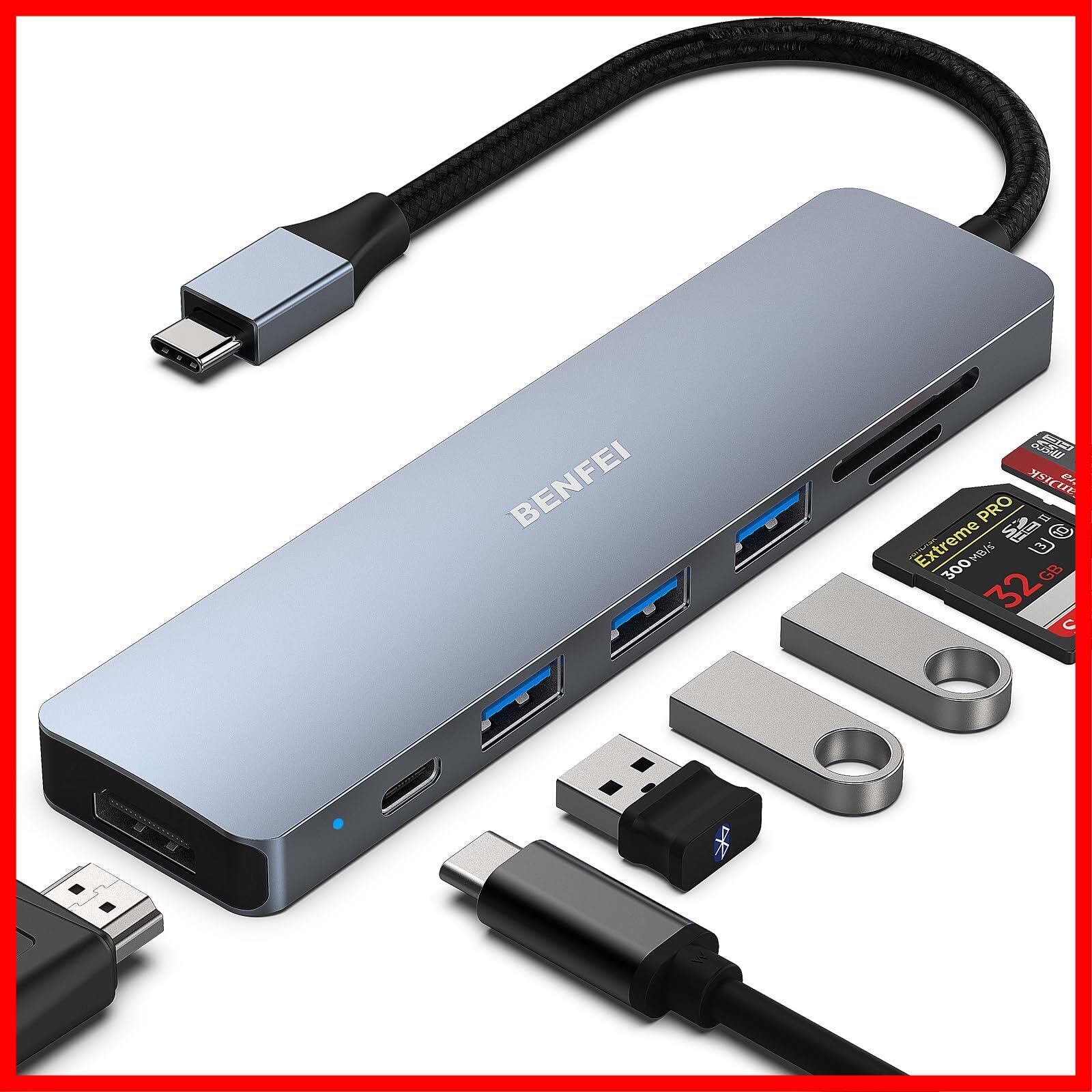 BENFEI USB C ハブ 7in1、USB C ハブ マルチポート アダプター、USB-C - HDMI 4K@60Hz、USB-C - SD/TF カードリーダー/3*USB 3.0/ PD 100W 充電 パワーデリバリー Thunderbolt 3/4 iPhone 15 Pro/Max, MacBook Pro/Air 2023, iPad Pro, iMac, XPS などに対応