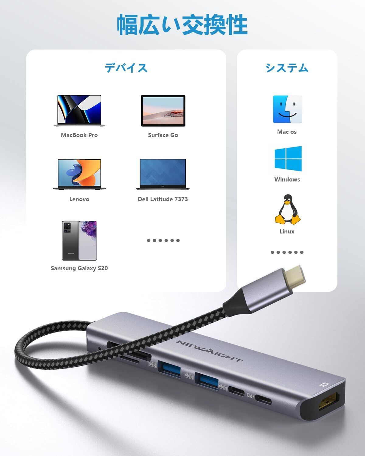 【USB C 100W 高速充電】:Power Delivery対応したUSB-Cポート経由で、MacBookやIpad pro 、 Dell XPS、Lenovo Yoga、Surface Go、HP Spectre、などパソコンに100Wの急速充電を提供できるだけではなく、安定した接続を保証できます。多数のデバイスを同時に接続しても、電力不足の心配がありません。