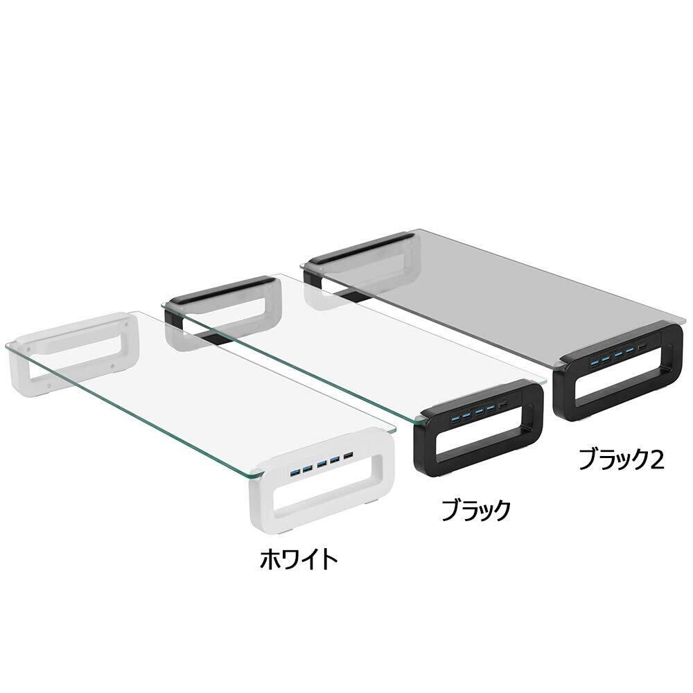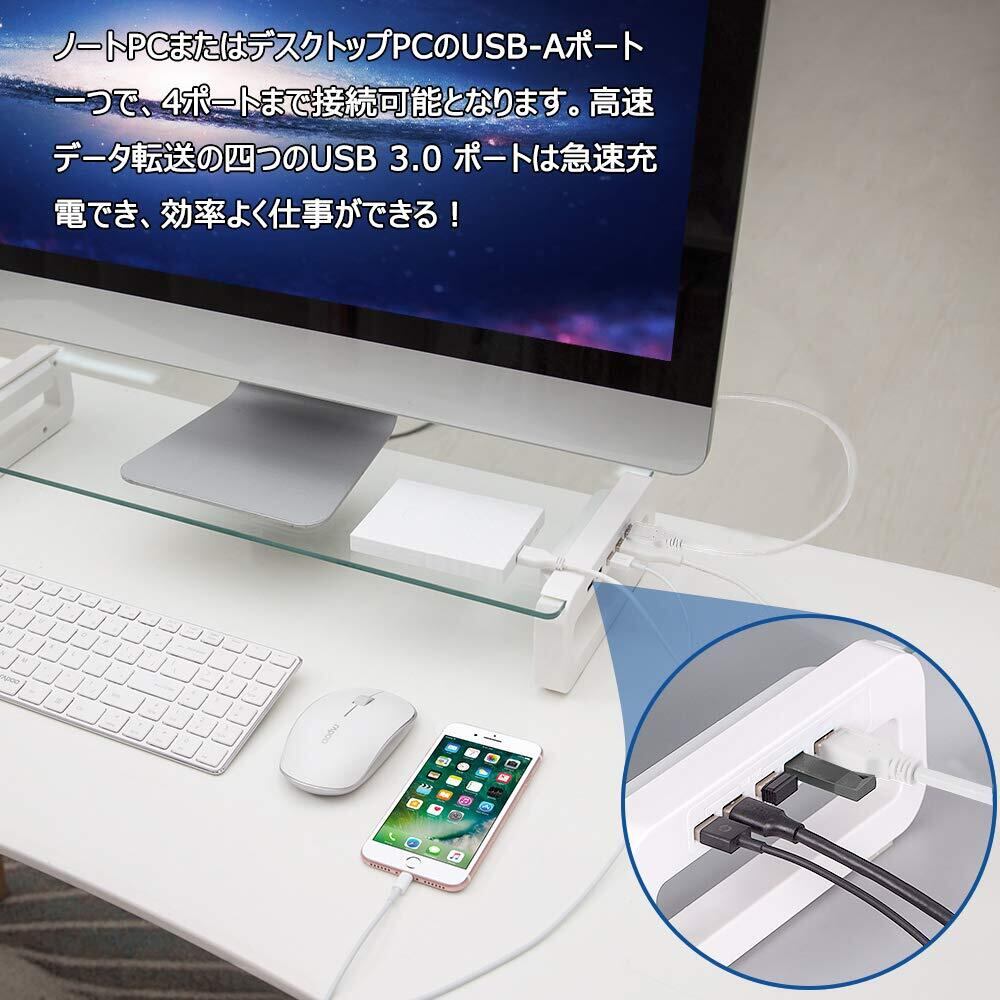 色:ホワイト【4 USB 3.0 ポートHub】 机上台 急速充電 5Gbps 高速データ転送 強化ガラス製 モニター台 デスクボード ノートパソコンスタンド モニタースタンド キーボードトレイ Dreamsoule USBケーブル付き (幅55cm, ホワイト) (ホワイト)
