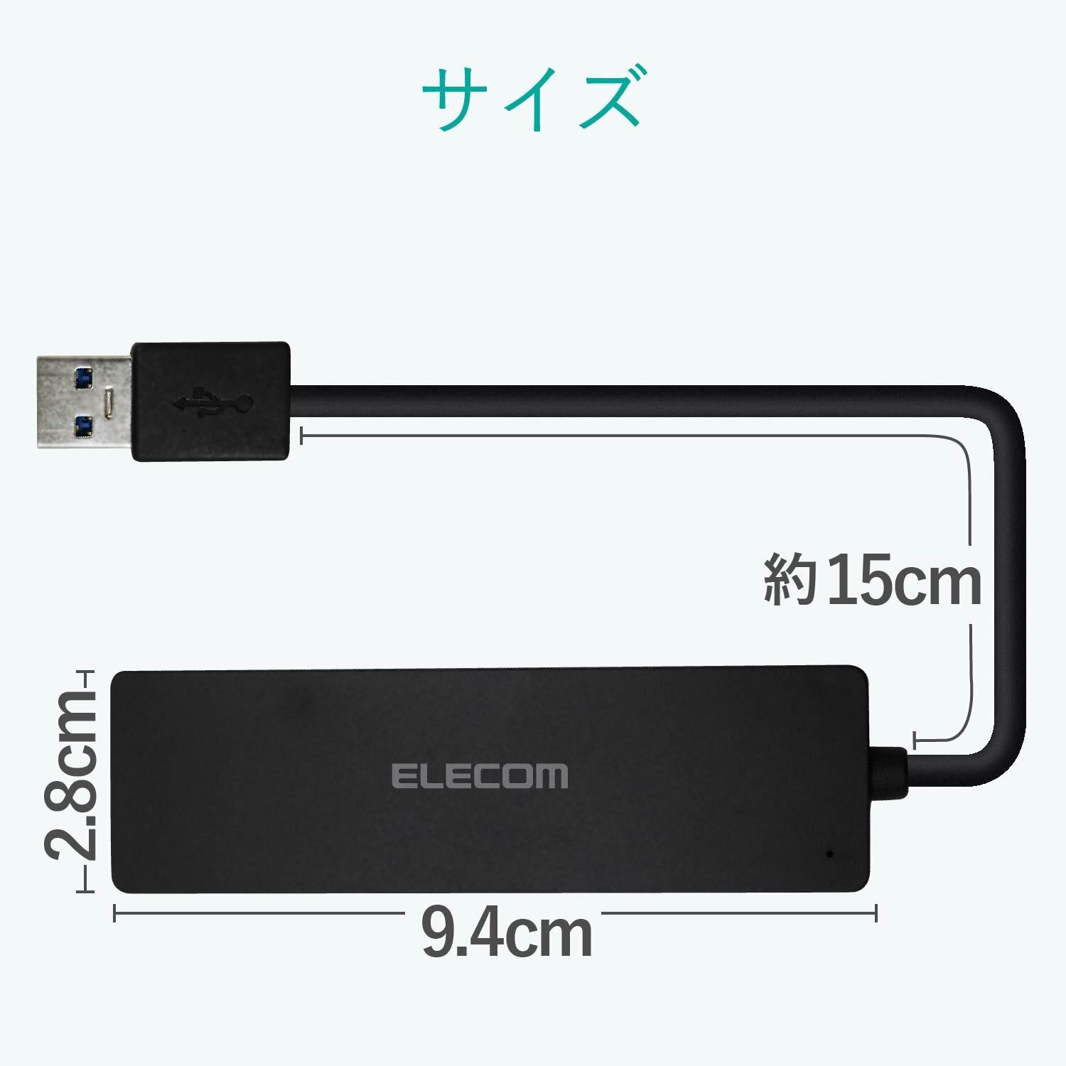 サイズ:4ポート(15cm)ブラック Switch対応 Nintendo ノートPC Pro/Chromebook他 U3H-FC02BBK バスパワー【超小型・軽量設計】MacBook/Surface 4ポート 3.0 USBハブ エレコム