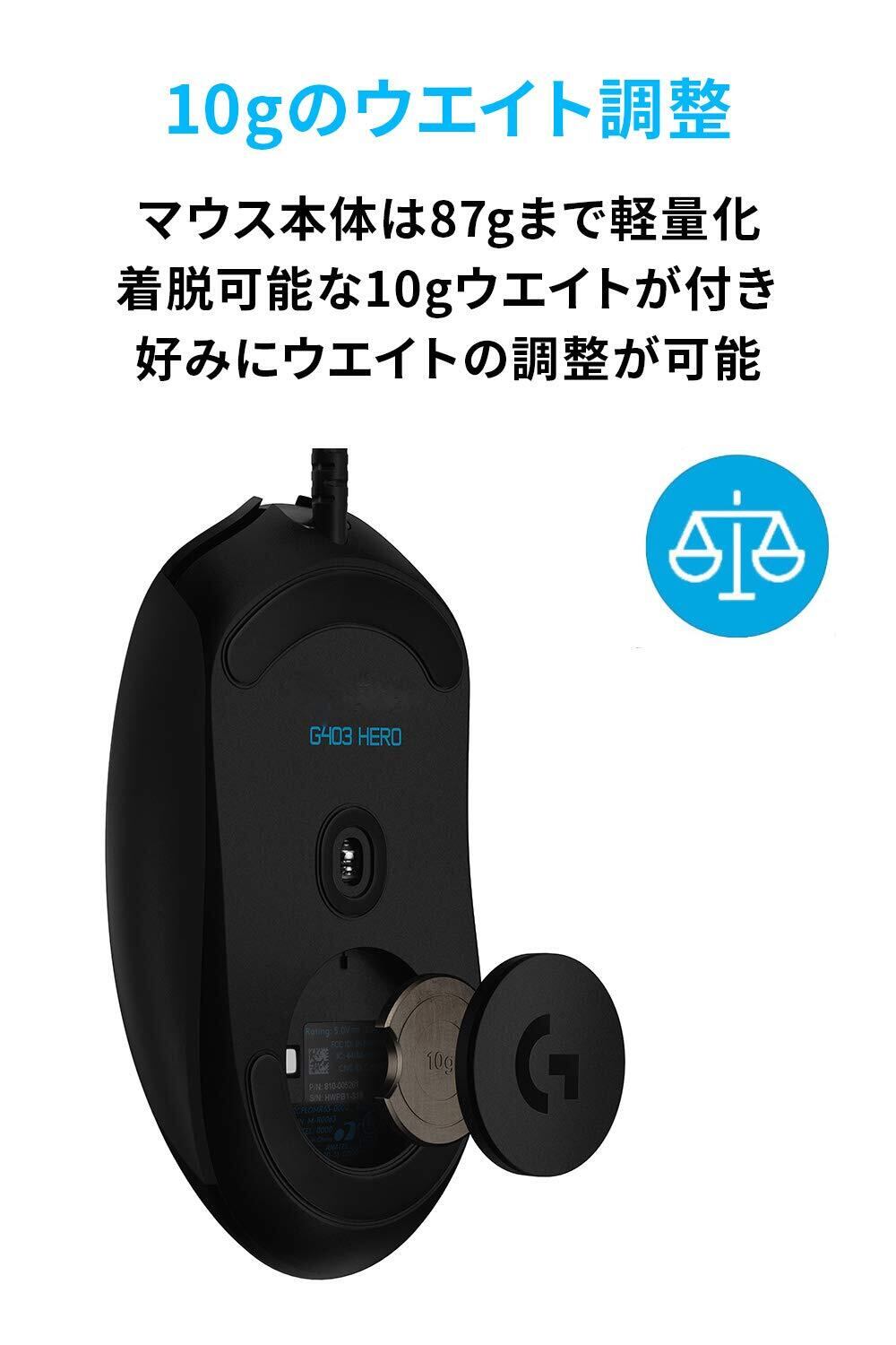 【Amazon.co.jp限定】 Logicool G ゲーミングマウス G403h HERO 有線 軽量 87g ゲーミング マウス 有線マウス 25Kセンサー エルゴノミクス LIGHTSYNC RGB PC windows mac G403 ブラック 国内正規品 ※Amazon限定 壁紙ダウンロード付き