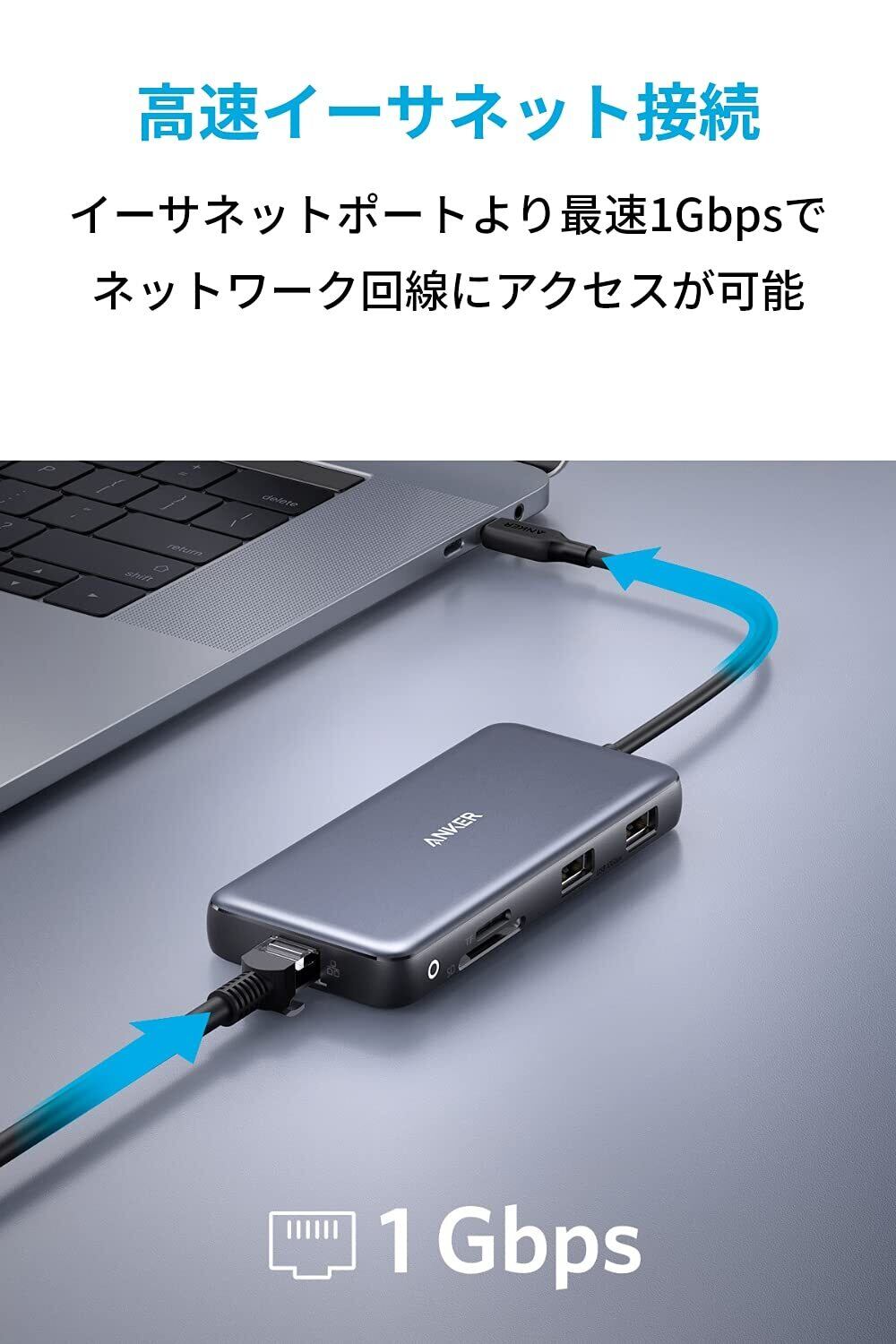 【在庫処分】Anker PowerExpand 8-in-1 USB-C PD 10Gbps データ ハブ 100W USB Power Delivery 対応 USB-Cポート 4K (60Hz) 出力対応 HDMIポート 10Gbps 高速データ転送 USB-Cポート USB-Aポート 1Gbps イーサネット microSD&SDカード スロット搭載 MacBook Pro iPad Pro対応