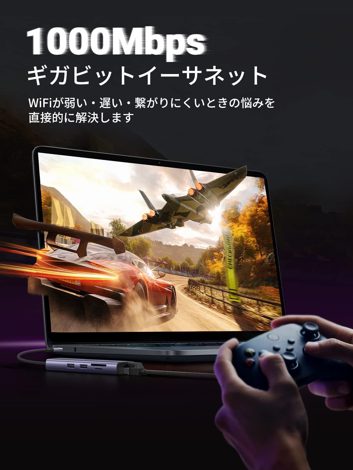 【1000Mbps高速伝送&SD/TFカードリーダー】有線LAN変換ポート Type Cは最大1000Mbpsまでの高速回線速度になり、安定また超高速のインターネット通信が維持されています。仕事の効率がより良くなり、オンラインゲームも遅延無くなります。またSD/micro SDスロットを搭載で、デジカメなどで撮影した写真や映像を取り込むことができます。