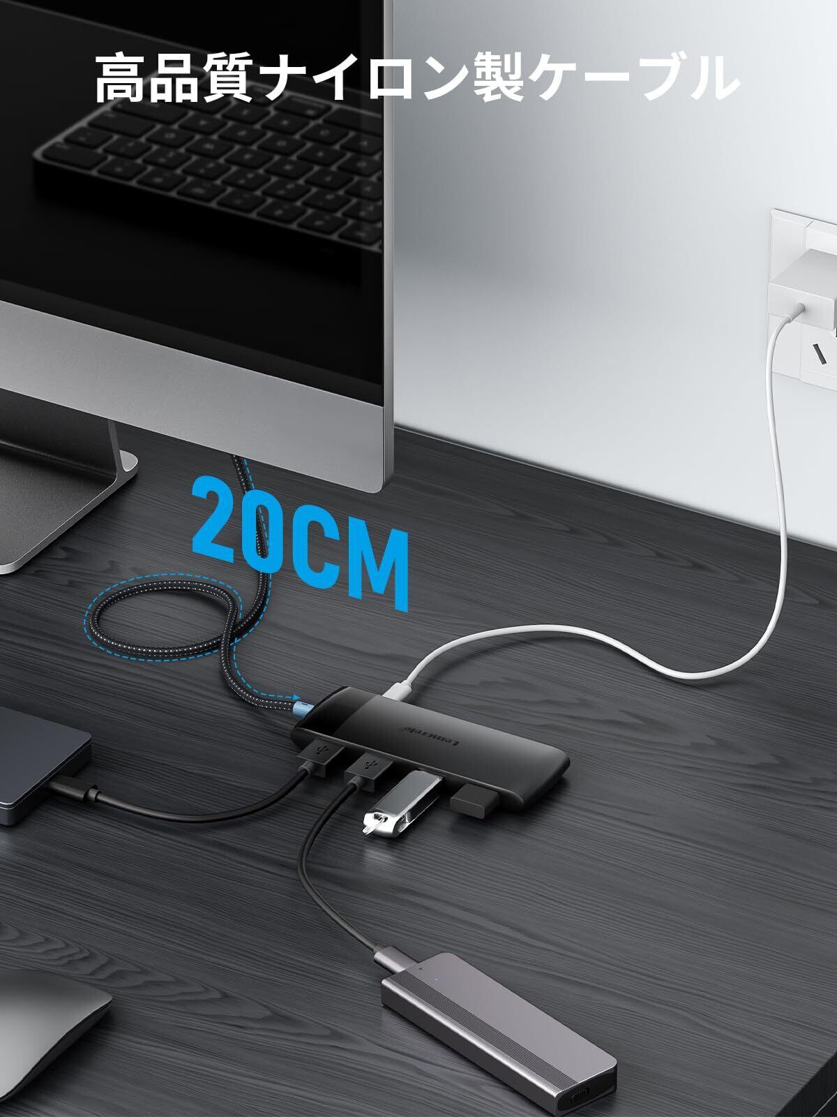 USB C ハブ 10Gbps 8ポート拡張 USB 3.2 Gen 2 ハブ変換アダプタ USB-A*7 電源ポート付きUSB C to USB 3.2 変換アダプタ、マルチポートハブMacBook Pro/iMac/富士通/Chromebook/SamsungS24/23用在宅勤務ゲームに最適20cmケーブル付き(ブラック)