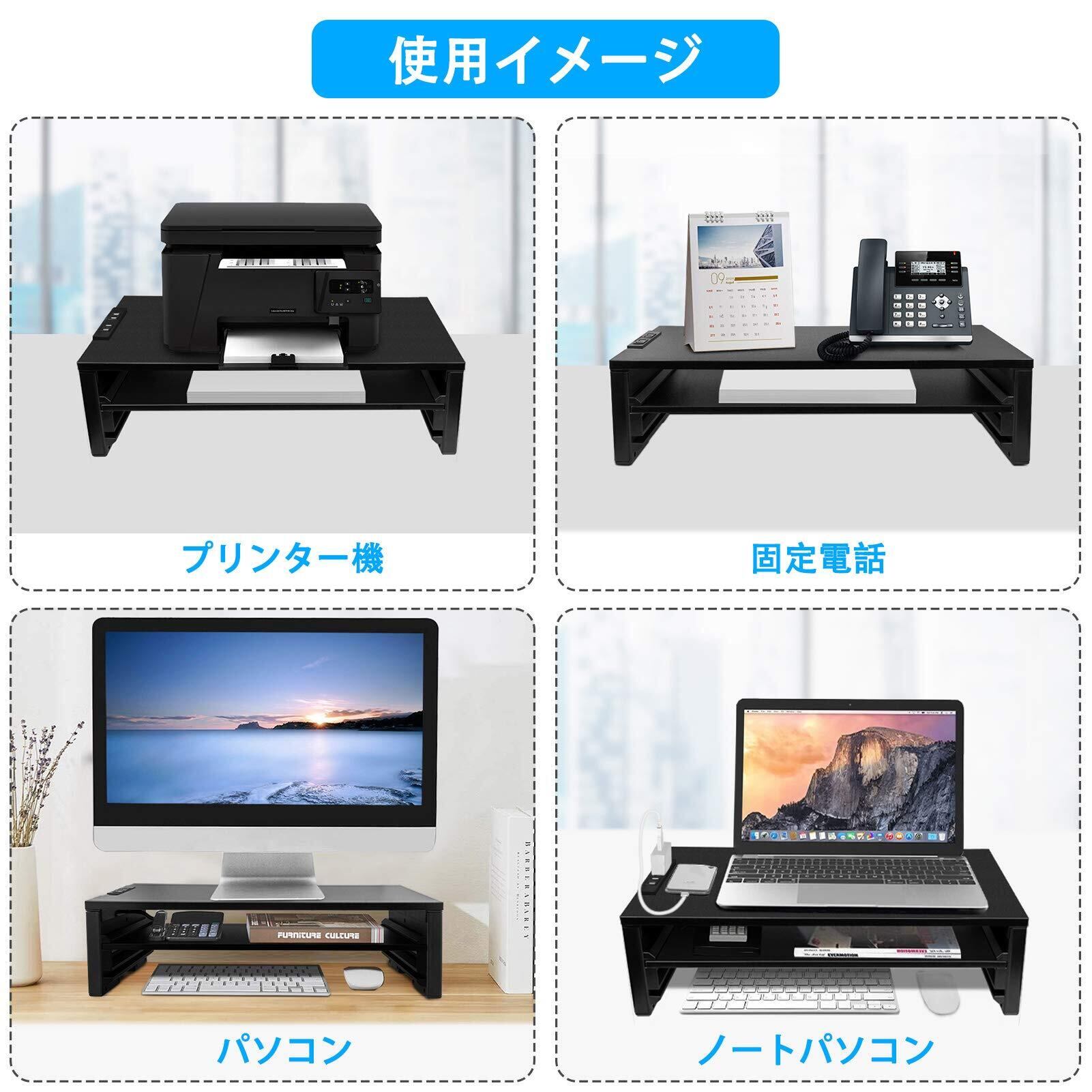 サイズ:540x235x145MMモニター台 二段式 机上台 EAYHM 2口コンセント付き 木製天板54x23.5CM PCキーボード収納ラック パソコン スタンド プリンター台