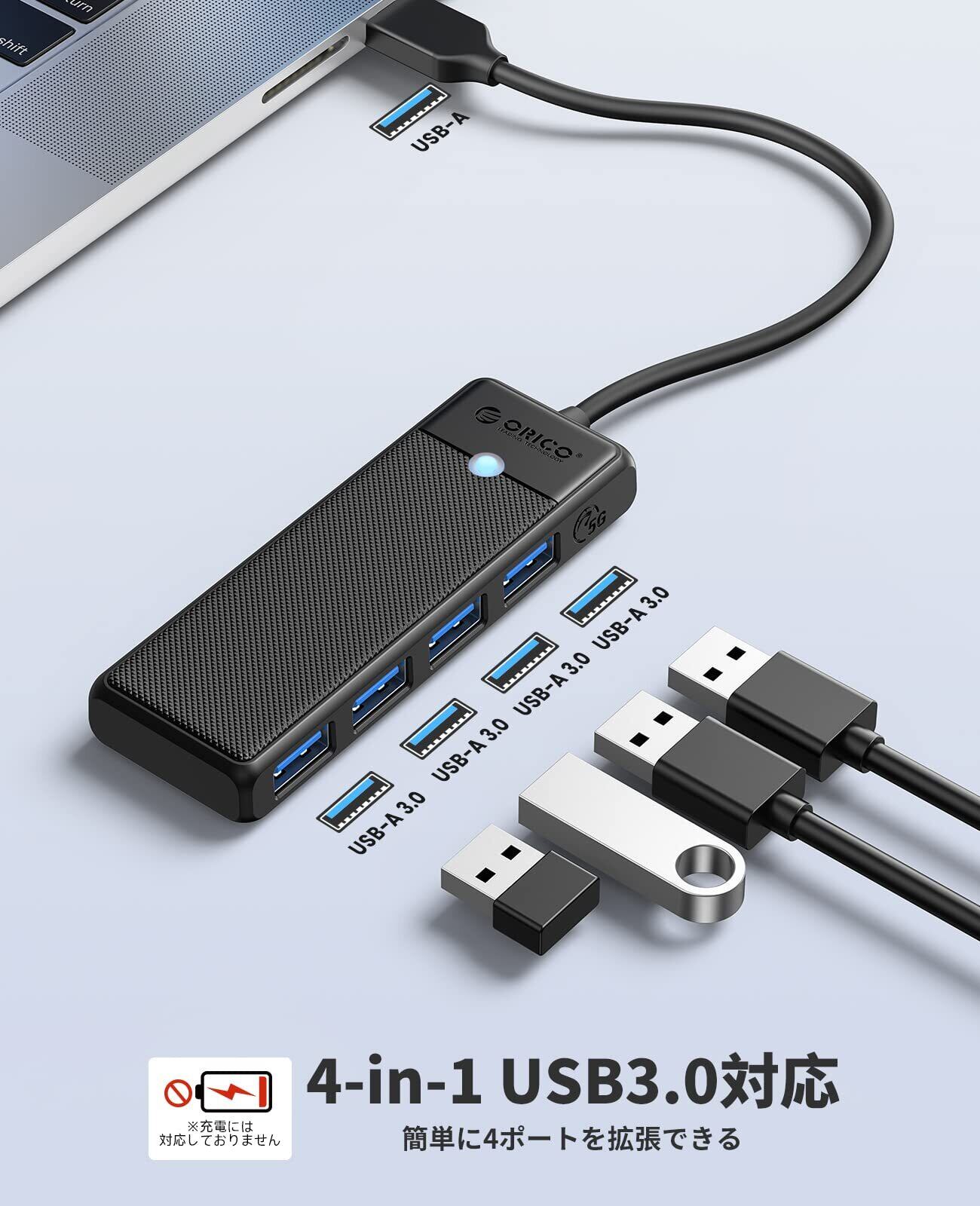 【4in1 超コンパクトUSBハブ】ほとんどのノートパソコンが小型化し、複数のUSB-Aポートを増設することができなくなってきています。4つのUSB3.0 Aポートを備えたORICOUSBハブで、パソコンのポートが足りない、ハブの持ち運びが不便という悩みを直接的に解決します。ケーブル直付けで超薄型・コンパクトサイズなので、使用や持ち運びが便利です!