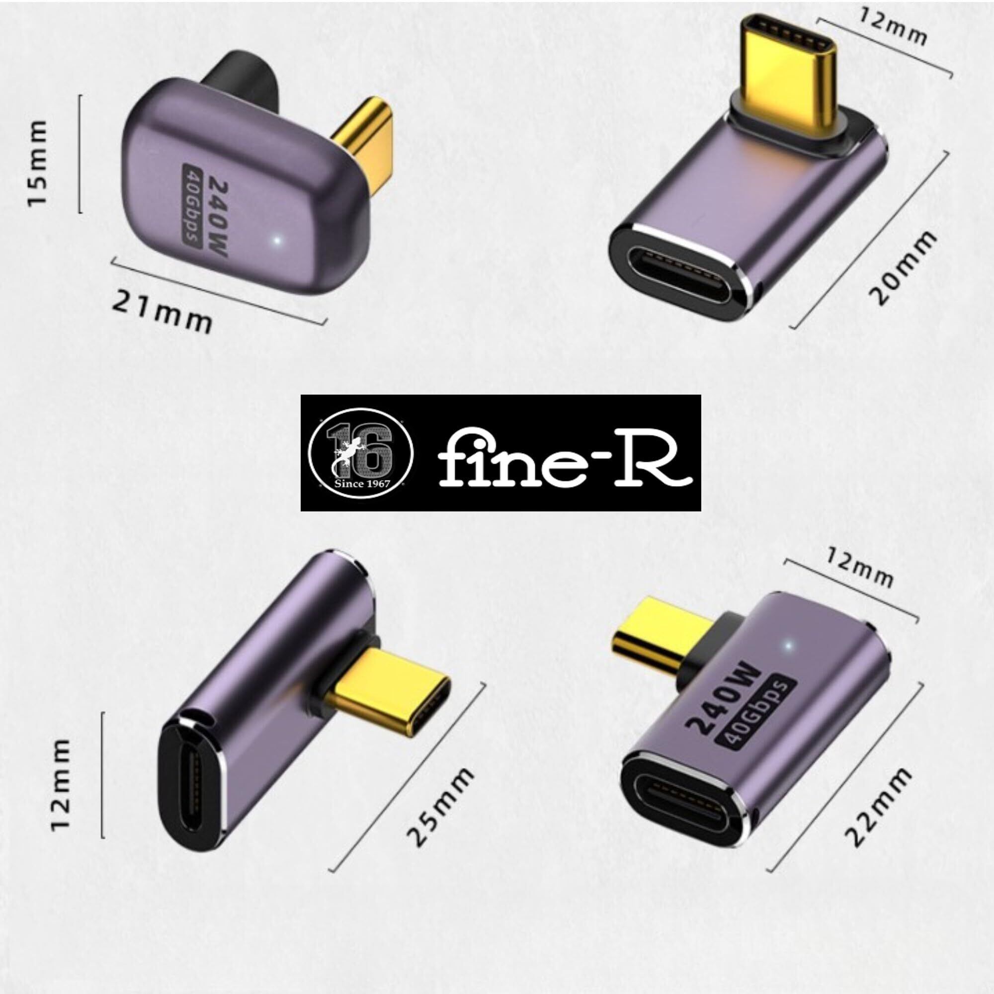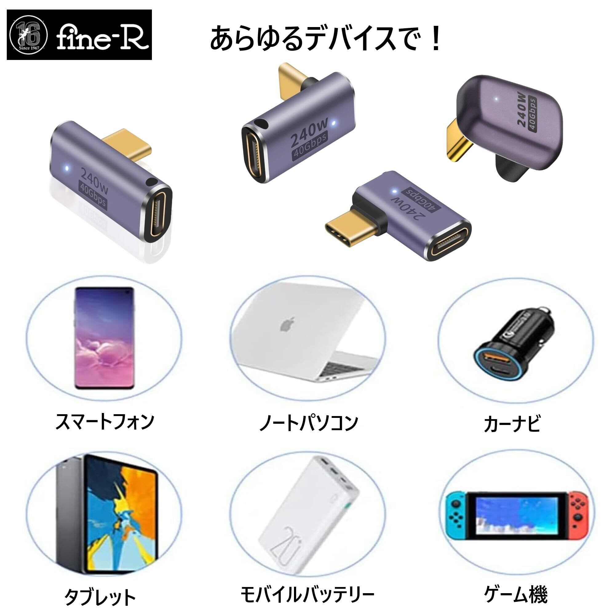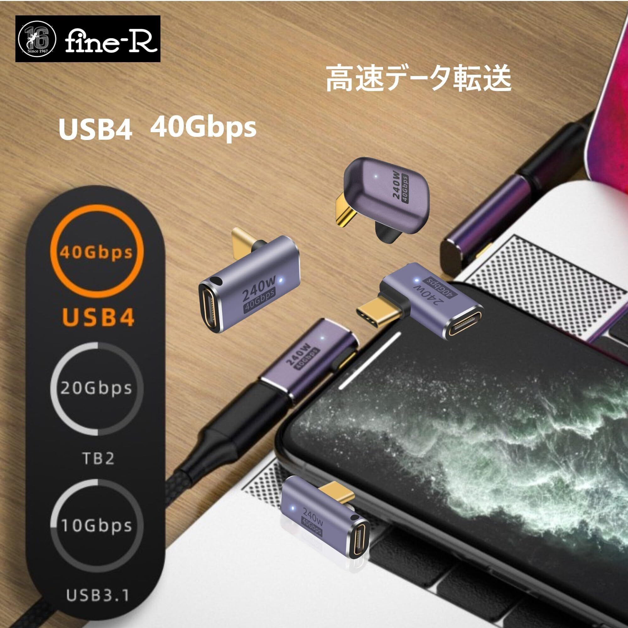 fine-R 240W 高速充電 対応 USB4 Type USB C 変換アダプタ USBアダプタ U型 U字 U字型 PD充電 高速データ転送 40Gbps 8K 映像出力 オス メス USB-C コネクタ パソコン・周辺機器 PCアクセサリ・サプライ (PL保険加入品) (240w PU型 1個)