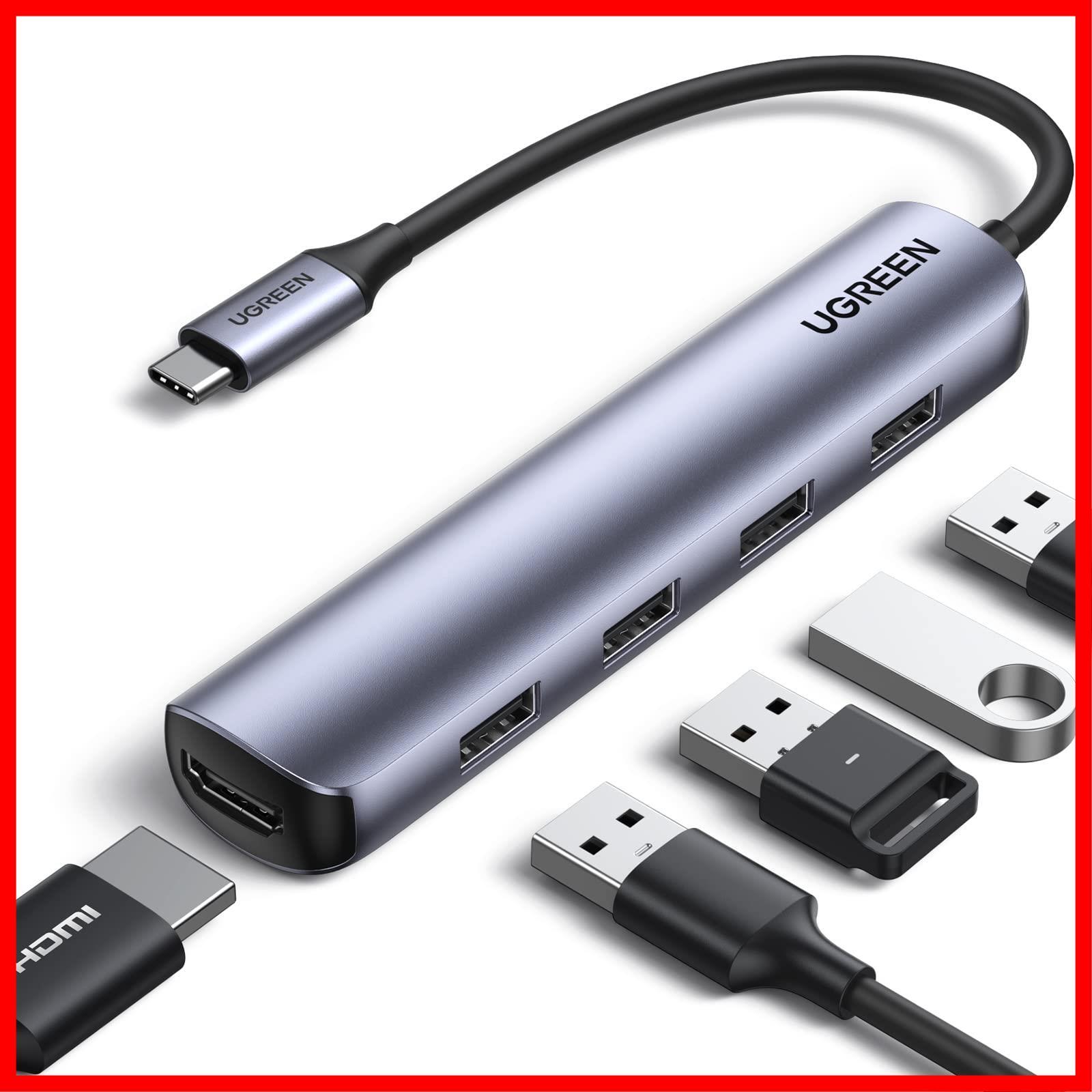 UGREEN USB Cハブマルチポートアダプター HDMI 5-IN-1 スリムハブ 4*USB3.0ポート 5Gbps超高速データ転送用 4K HDMI出力 Macbook Pro、Macbook Air、iPad Pro、XPSなどと互換性あり