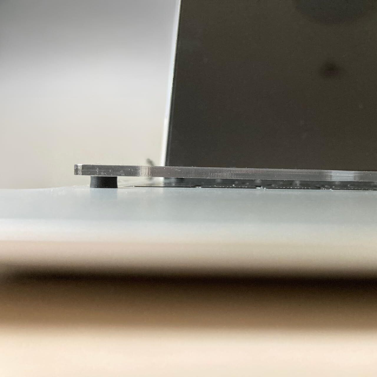 ゴム足は、3M製の高粘着性シールを採用しています。丸型のゴム足を8個同梱しておりますので、アクリル板の四隅等、好みに応じて任意の場所に貼ってご使用いただけます。(高い粘着力を持つため、一度貼付すると容易には剥がれません。貼る際には十分ご注意ください。)