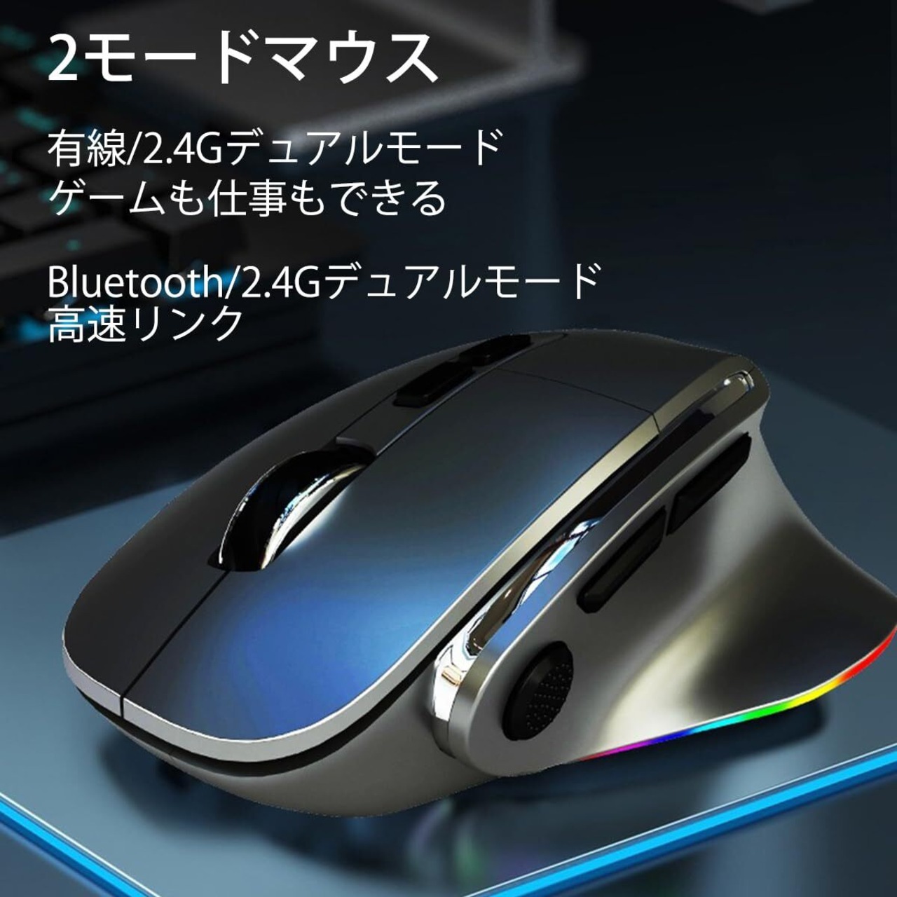 色:ブラック無線マウス 2.4Ghz光学式 4DPIモード切替 Bluetooth対応 8ボタン RGBライト ワイヤレスマウス 節電モデル 500mAh 握りやすい 高精度 充電式 (ブラック)