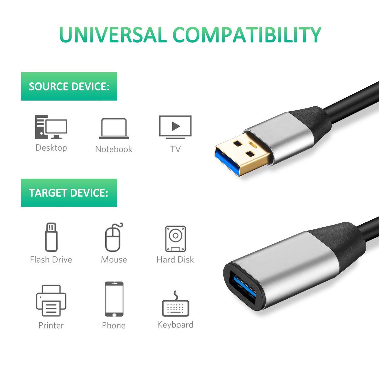 お使いのコンピューター、テレビ、外付けハードドライブ、およびその他のデバイスを使用する場所が制限される場合でも、USBポートからこのケーブルを延長すれば、使用範囲が広がります。お使いのケーブルが短くお困りの方におすすめです。このケーブルはあなたに必要な長さと便利さを提供します。