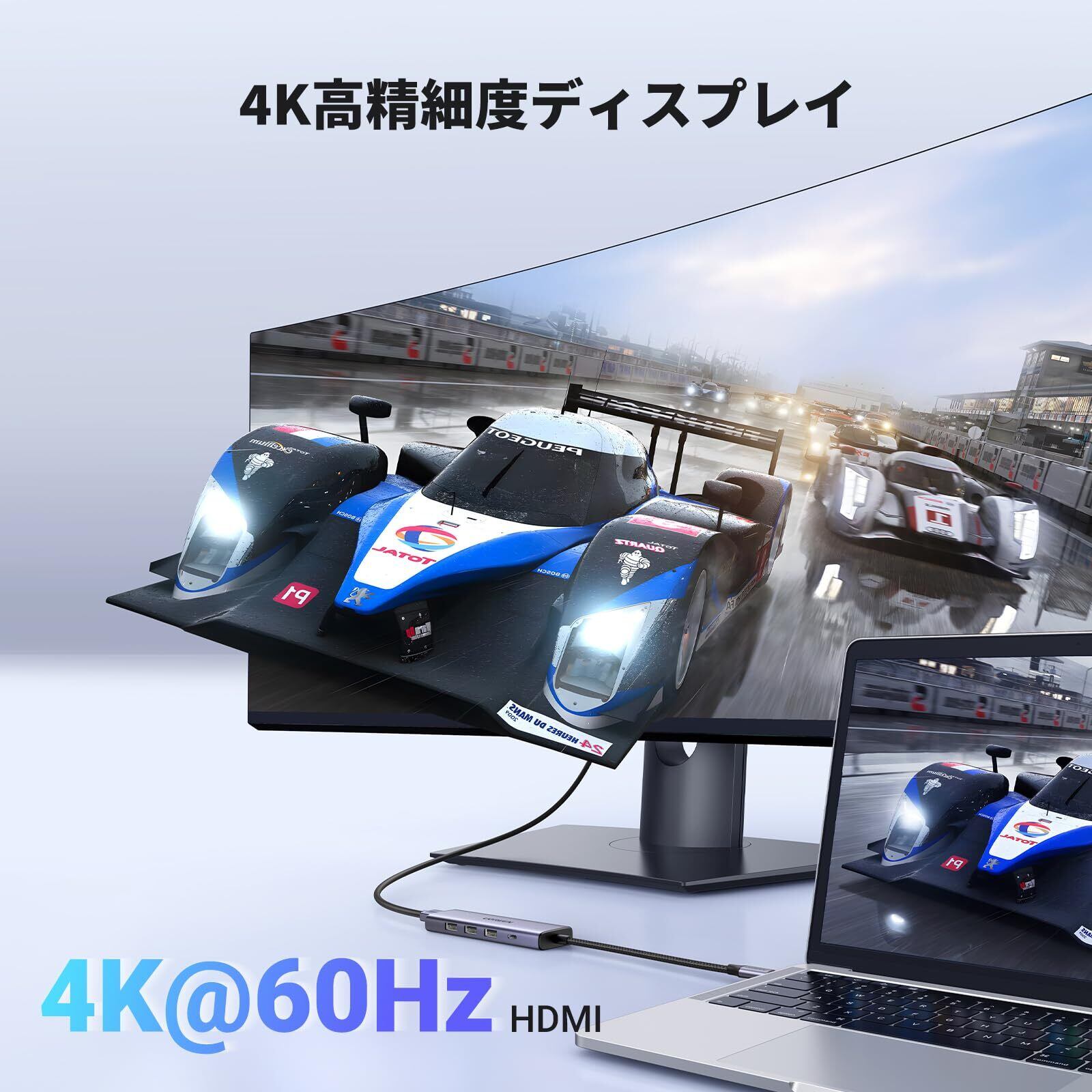【人気商品】PD急速充電 Type-C 3*USB‐A3.0ポート4K 100W HDMI2.0出力 5Gbps高速データ転送 Windows Cハブ 11/10/8.1/8; MAC OS; USB linux; IOS;Androidシステム対応 MacBook 5-IN-1 Air/MacBook pro/Dell XPS13シリーズ;iPad UGREEN Pro 2018/2020などと互換性あり