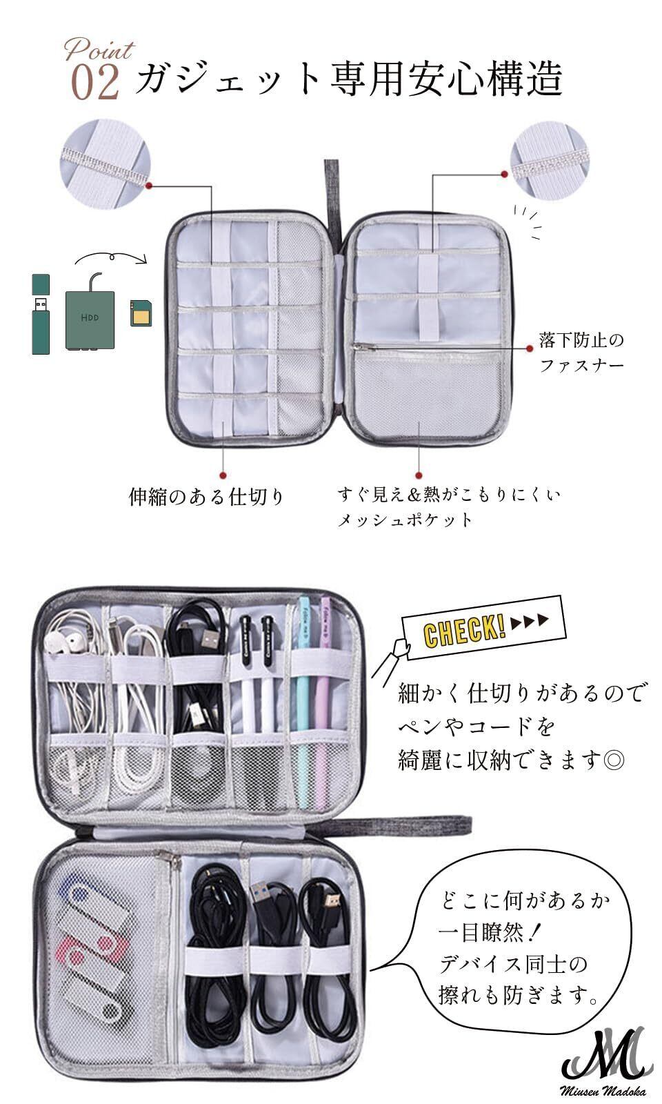 MiusenMadoka PC周辺小物用収納ポーチケース ガジェットポーチ USBメモリ収納袋 モバイル収納ケース 万能モバイル収納ケース 軽量 生活防水 旅行用 多機能メッシュ整理袋 (Gray)