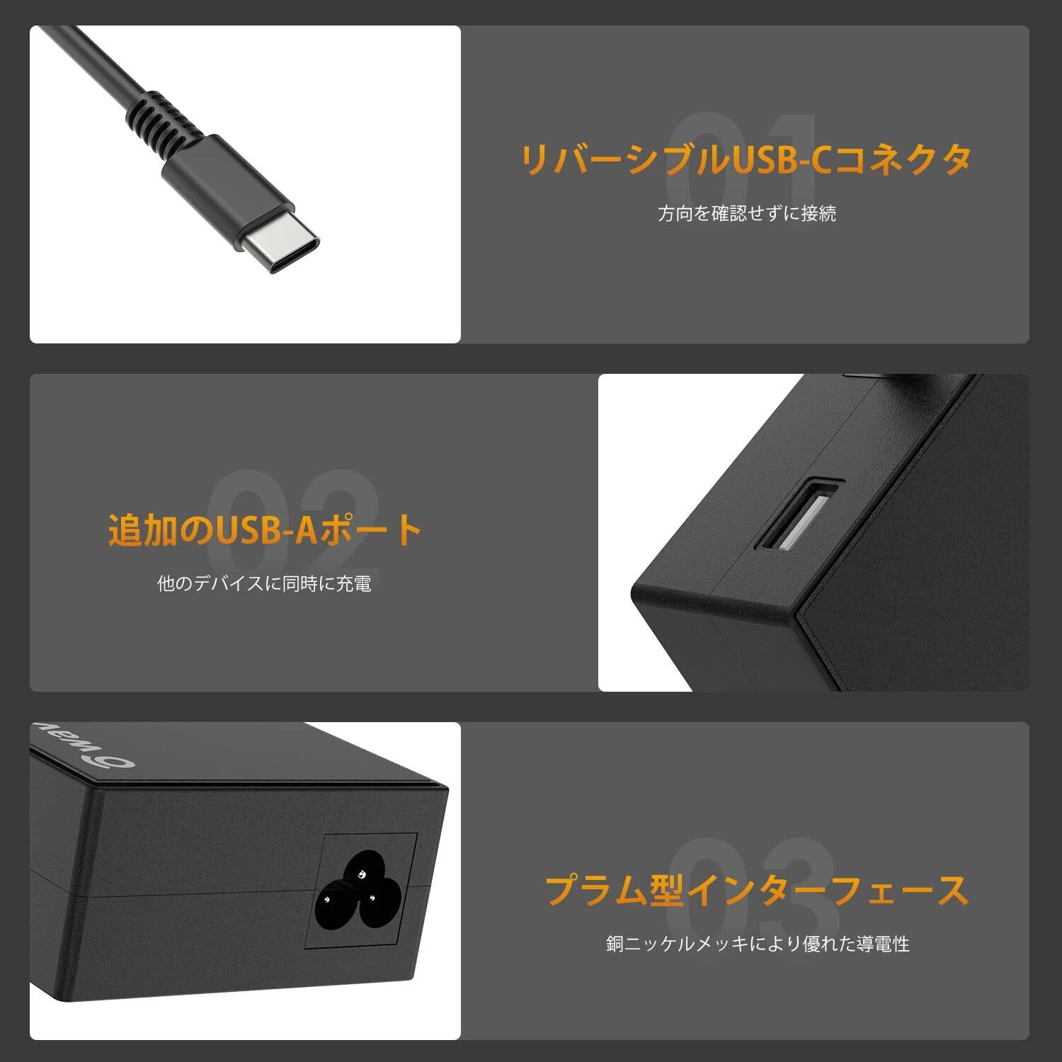 【幅広い互換性】MacBook、Samsung、Dell、HP、Huawei、Lenovo、Acer、およびほとんどのUSB-Cパソコンを対応しています。追加のUSB-Aポートは、モバイルまたはタブレットに同時に電力を供給するために最大12Wを提供します。購入する前に、PCのtype-cインターフェイスを確認し、充電がサポートされていることをご確認してください。