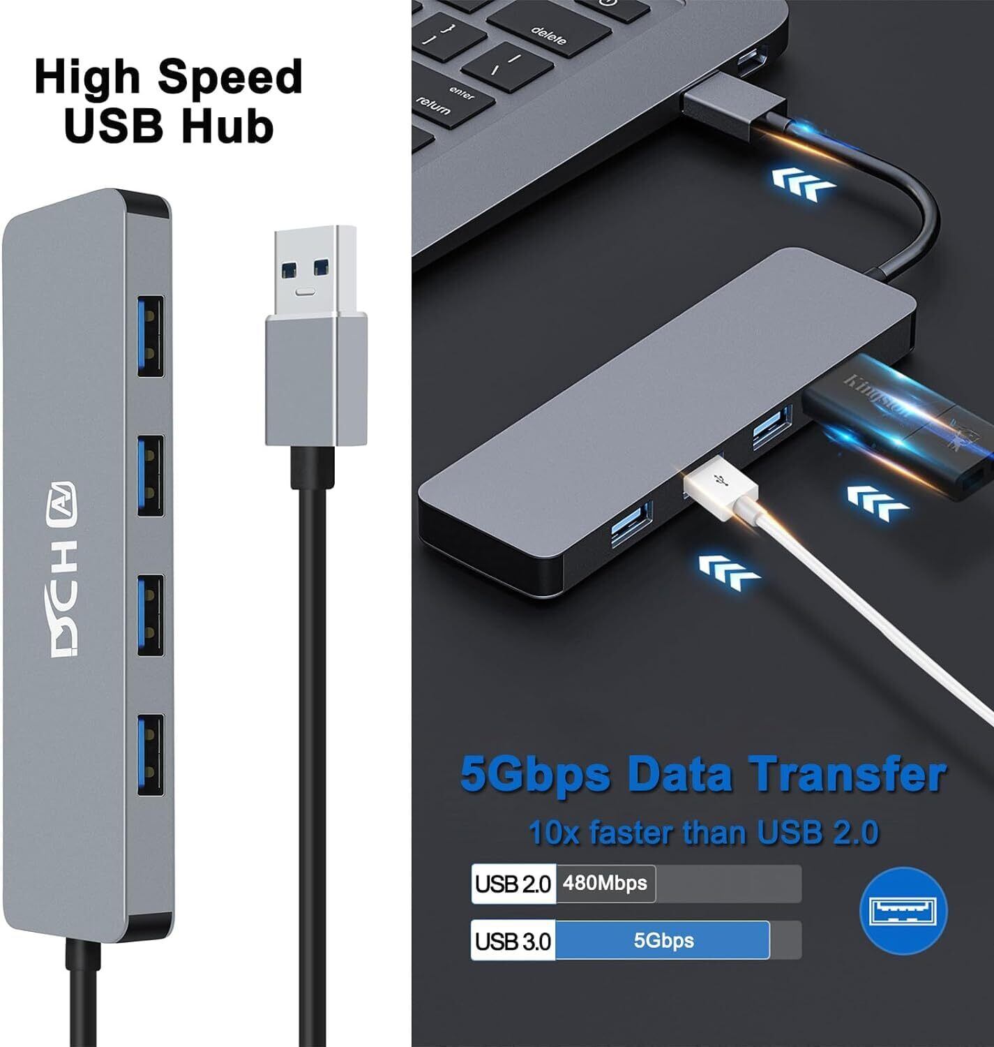 DCHAV USB ハブ 4 ポート USB 3.0 拡張 超スリム USBスプリッター マルチポート アダプター 軽量 ノートPC プリンター USBメモリ HDD キーボード マウス Windows Mac Linux Chrome対応
