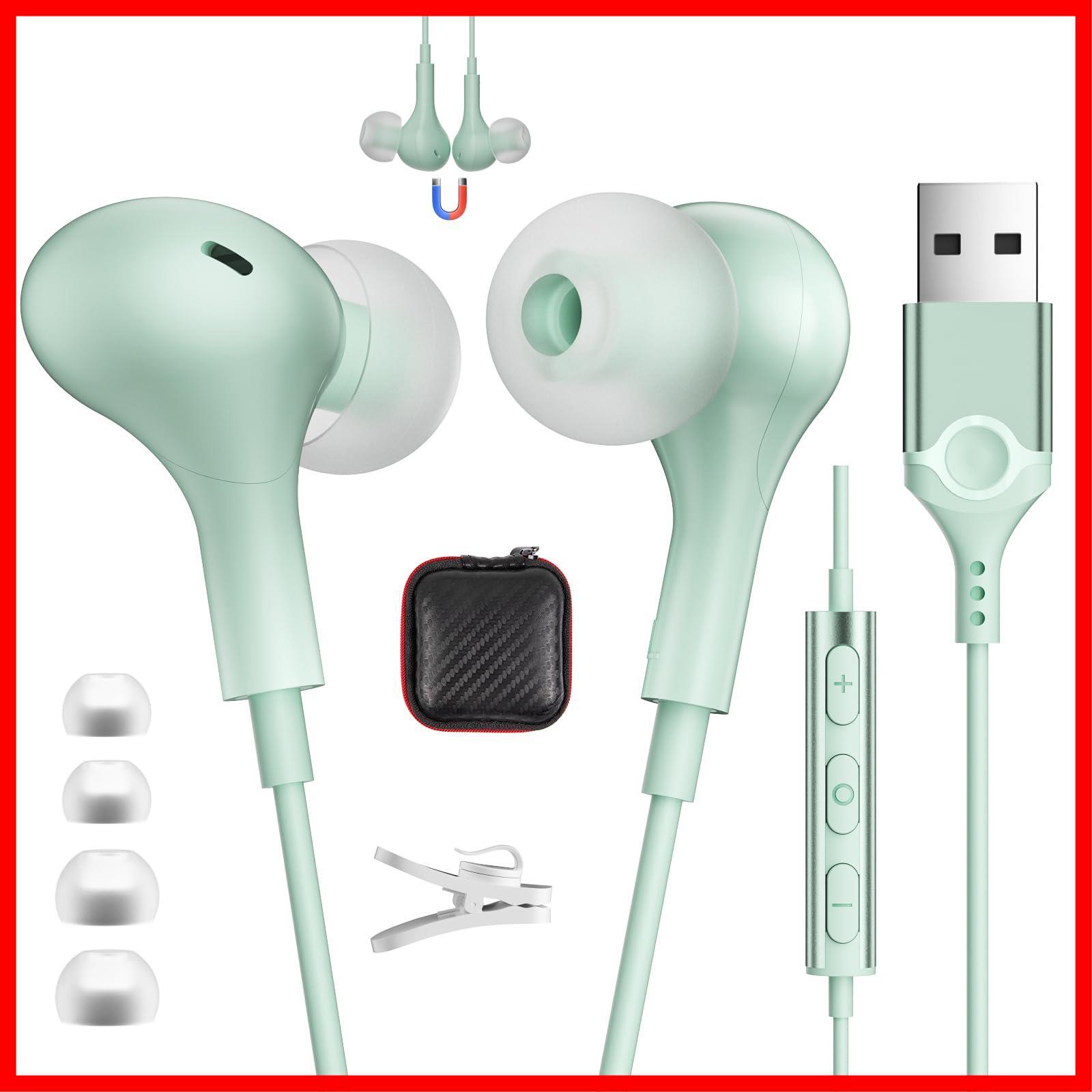 ASKUBSKU イヤホン USB 有線 マイク付き 2.3m pc パソコン用 ゲーミング ヘッドホン 軽量 磁気デザイン 通話可能 音量調節 ウェブ会議 テレワーク リモートワーク zoom LINE Skype windows/mac/Chromebook/ps4 ps5/オンラインゲーム/デスクトップ/タブレット/ラップトップのUSB Aポートを持つデバイスに使用可 収納ケース付き 緑色