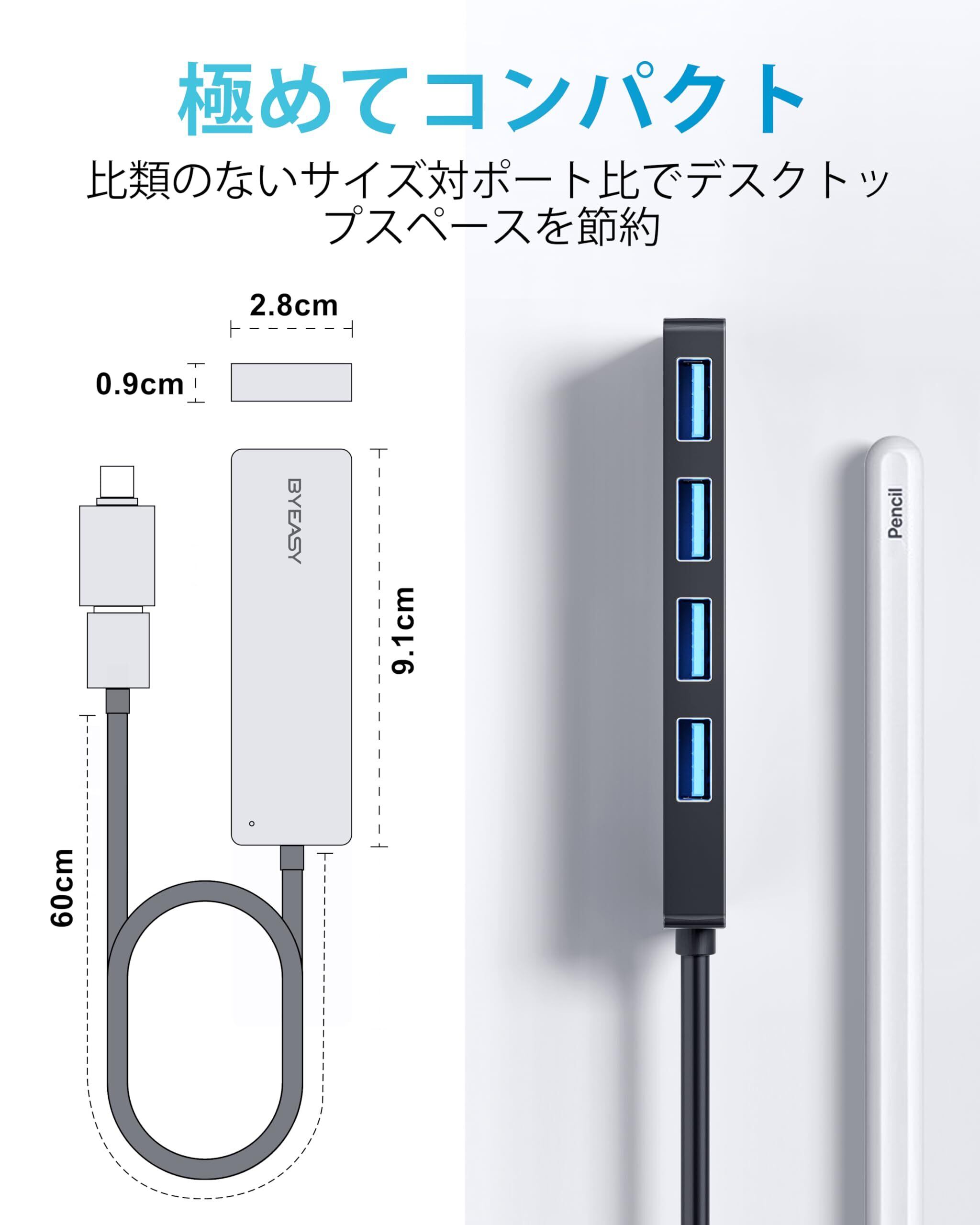 BYEASY USB C ハブ USB 3.1 Gen1 ハブ 4ポート 4-in-2 Type C HUB 高速ハブ 軽量 コンパクト MacBook Pro(2017/2016) / MacBook Air 2018 /Google Chromebook Pixel など対応