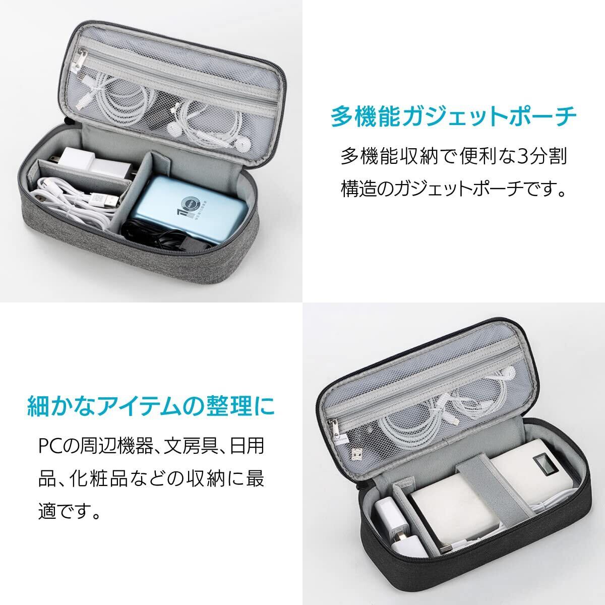ENN LLC ガジェットポーチ おしゃれ 収納ポーチ 防水 PC周辺機器整理収納 モバイルアクセサリー (ブラック)