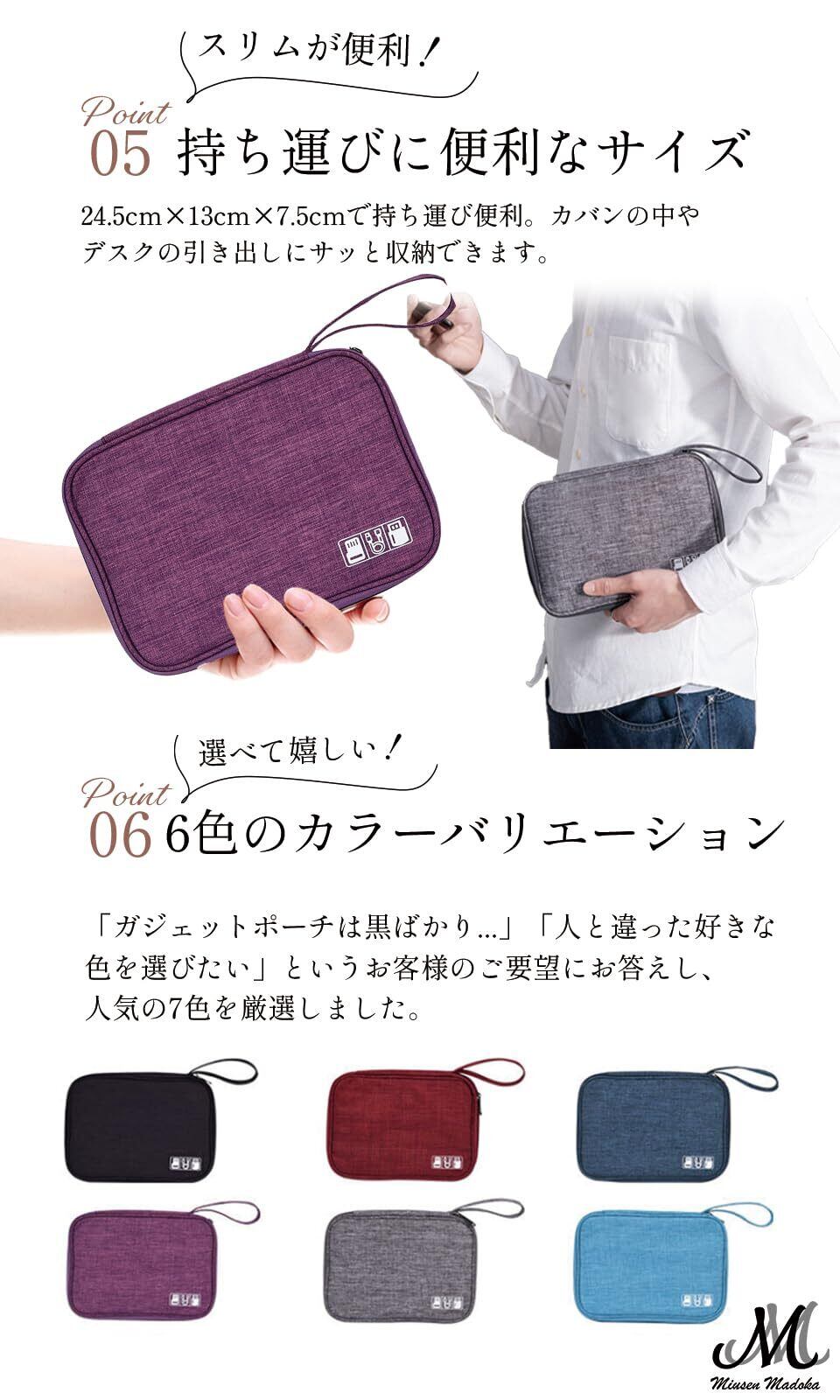 PC周辺小物用収納 バッグインバッグ 撥水加工 ケーブル収納 トラベルポーチ ガジェットポーチ 収納ケース マウス ケーブル コード モバイルバッテリー 充電器、モバイルアクセサリー、充電ケーブル、イヤホーンコード、SDカード、USBメモリ 小物入れ 整理 通勤 旅行 出張 持ち運び便利