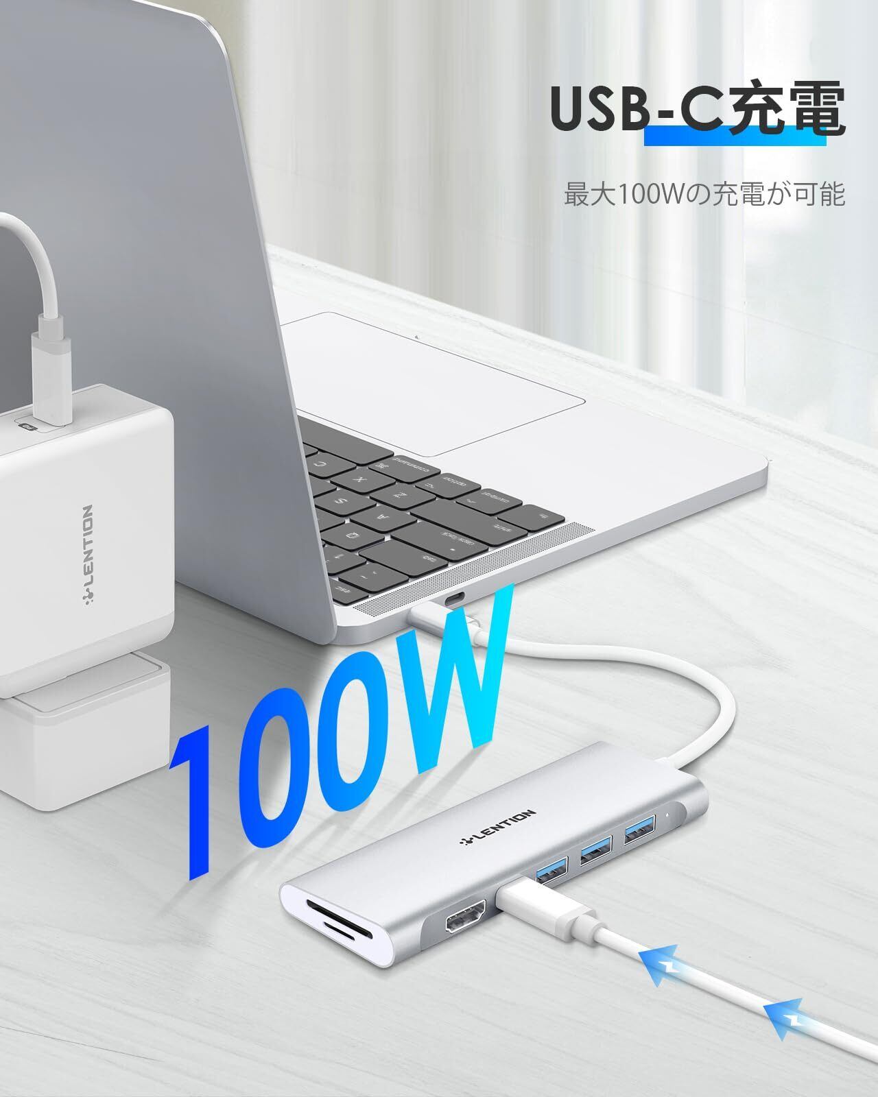 LENTION 7in1 USB Type C ハブ CB-C36b USB 3.0 ×3 100W PD充電 4K HDMI Micro SD / SDカードリーダー USB-C 変換アダプタ タイプc MacBook Pro (2016-2022 / M1 M2)、MacBook Air (2018-2022 / M1 M2)、iPad Pro、iPad Air、Surface Pro 7 8 / Go 2 3 (サーフェス)、Chromebookなどのノートパソコン、タブレットPC対応 (シルバー)
