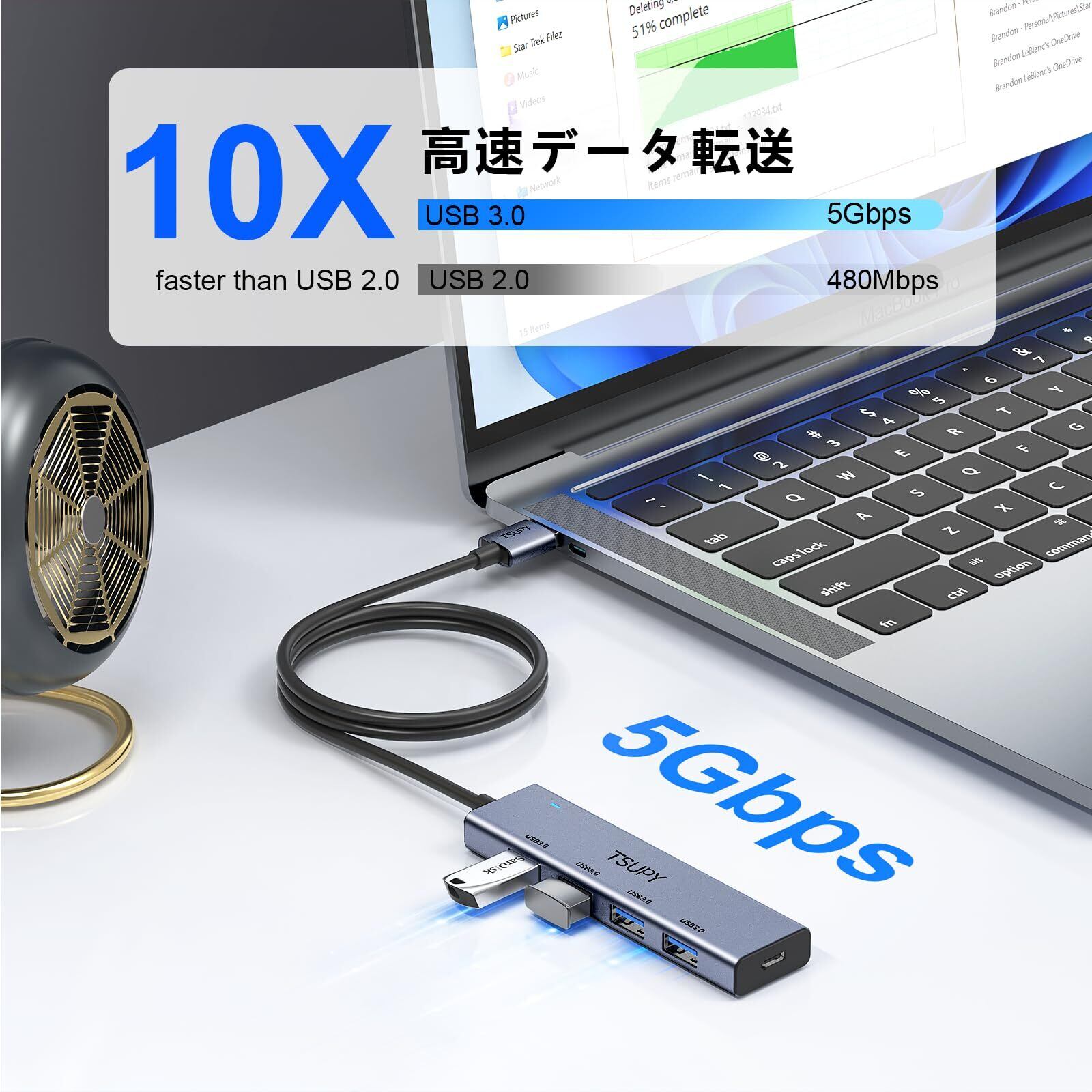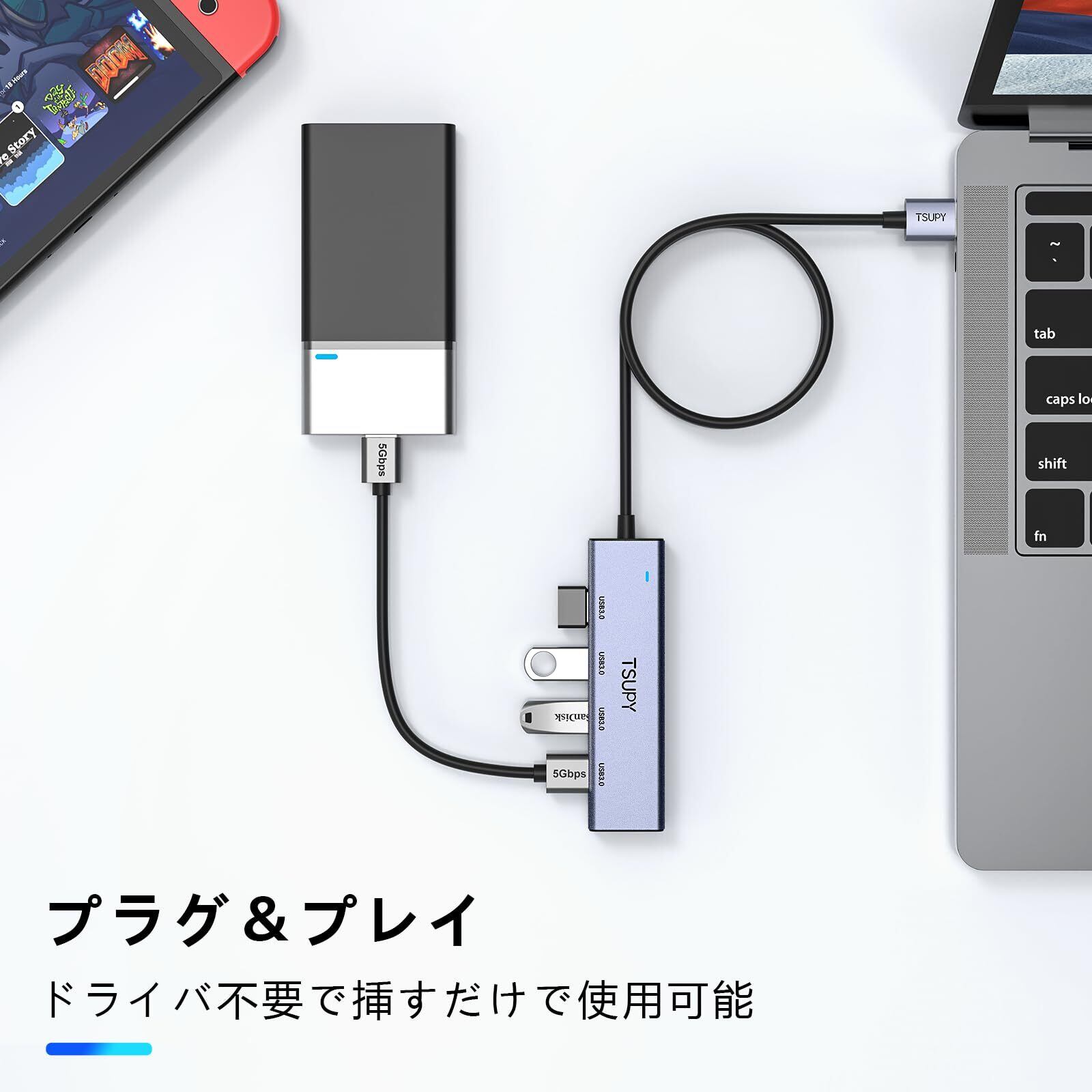 サイズ:5ポートリモート テレワーク PS5/Xbox/HDDに適用 在宅勤務ゲームに最適USB Pro/PS4/ MacBook/iMac/Surface コンパクト 軽量 Aポート×4 延長ケーブルUSB3.0ハブ5V/3A電源ポートバス/セルフ両用5Gbps高速転送USB3.0 Hub 120cm ハブ5ポート拡張 USB アルミ TSUPY