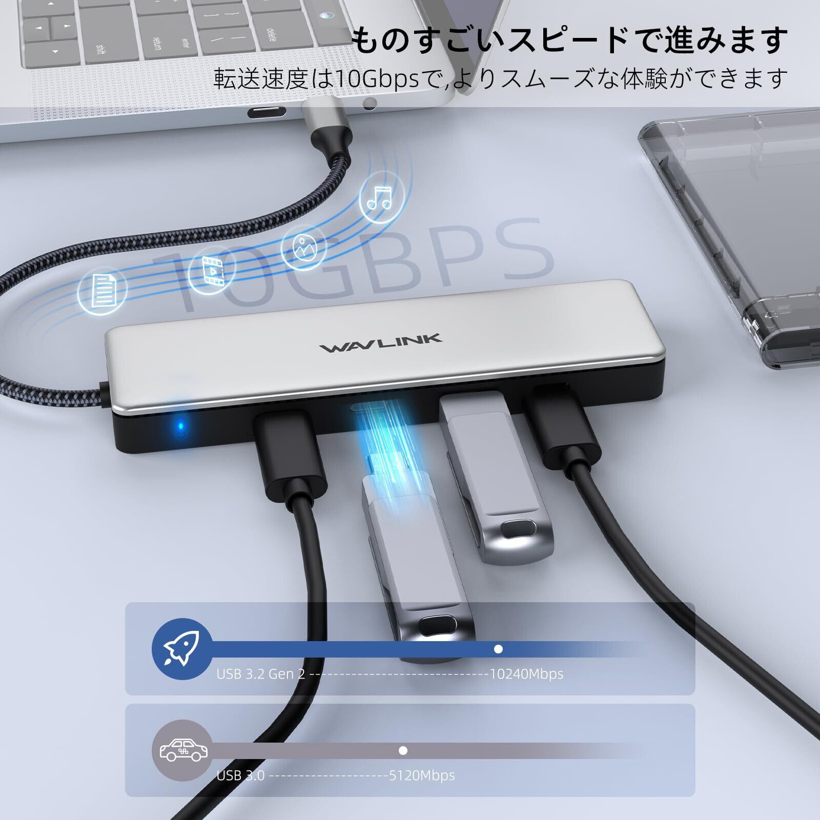 サイズ:3411_色:シルバー電力供給サポート、MacBook Pro/Air ポート、85W iMac データ C iPad USB USB Pro USB Dell 4 10Gbps Chromebook ハブ ハブ など用の 2 USB Gen 3.2 ポート アルミニウム type-C スプリッター WAVLINK
