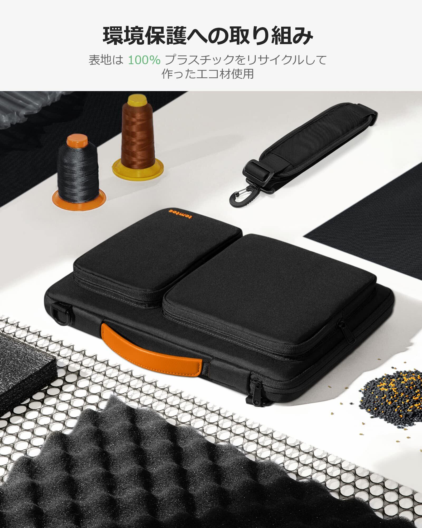 【品質や機能の両立】高品質の撥水加工されたエコ材表地、安心のYKK製ファスナー、裏生地の洗練されたライン模様、及びしっかりした作りでパソコンバッグに対する期待を上回ります。厳選されたPUレザーの持ち手や軽量化設計によりを最大限な快適さを実現。ペットボトルをリサイクルして作られたエコ材の使用により、パソコンを保護しながら、環境を保護します。tomtoc製品は全て12ヶ月間安心保証付きます。