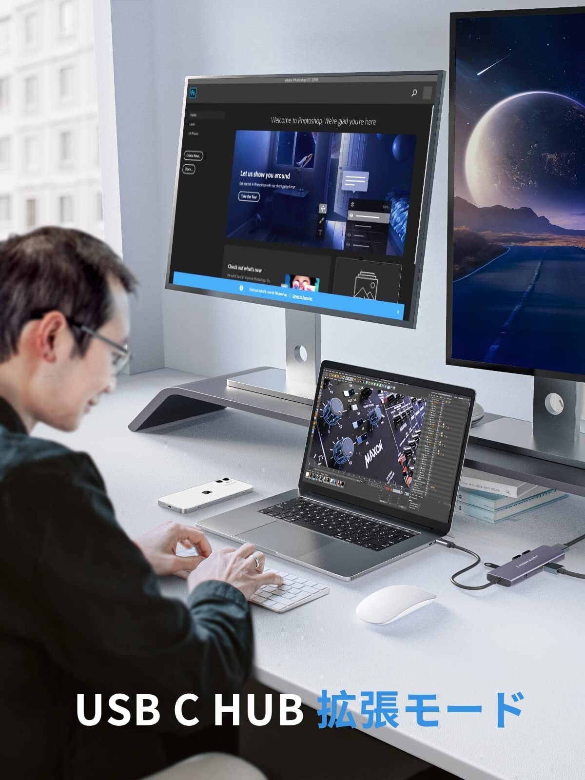 ※『超軽量と放熱性』:USB-C ハブは軽量で手のひらサイズなので、持ち運びに最適で、ポケットやPC バッグに入れて持ち運びも簡単です。USBC ハブはアルミ合金製です。 スリムで持ち運びやすいアルミボディデザインにより、放熱性が良く、耐摩耗性、耐食性、耐指紋性に優れています。